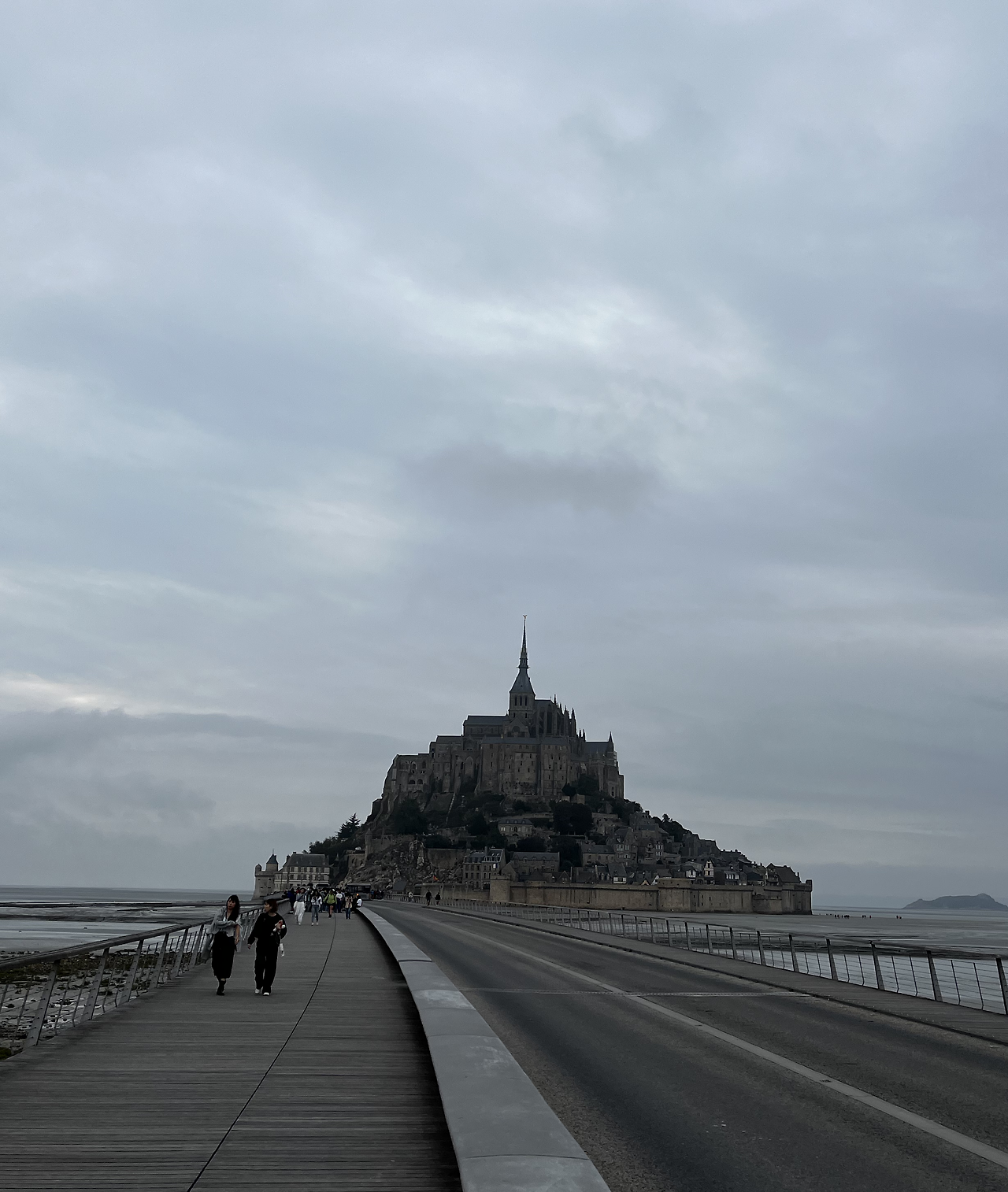 몽생미셸 자체도 괜찮았지만 섬에 위치한 수도원을 밖과 연결하는 모래톱 위 제방 다리를 걷는 순간이 기억에 남아있다. 셔틀버스를 타고 육지로 돌아가는 사람들이 대부분이었지만 나와 K를 비롯한 몇몇 사람들은 천천히 갯내음을 맡으며 걸어갔다. 항상 둘 혹은 그 이상으로 함께 다니게 되는 유럽 여행에서 오랜만에 드넓은 바다 위를 혼자 걸으며 생각할 수 있는 시간이었다. 아니, 매 걸음마다 잡다한 생각을 헨젤과 그레텔처럼 조금씩 떼어내는 시간이라 해야겠다. 몸이 피로한 것도, 관계에서 오는 피로감도 조금씩 바닷바람에 씻겨져 갔다.