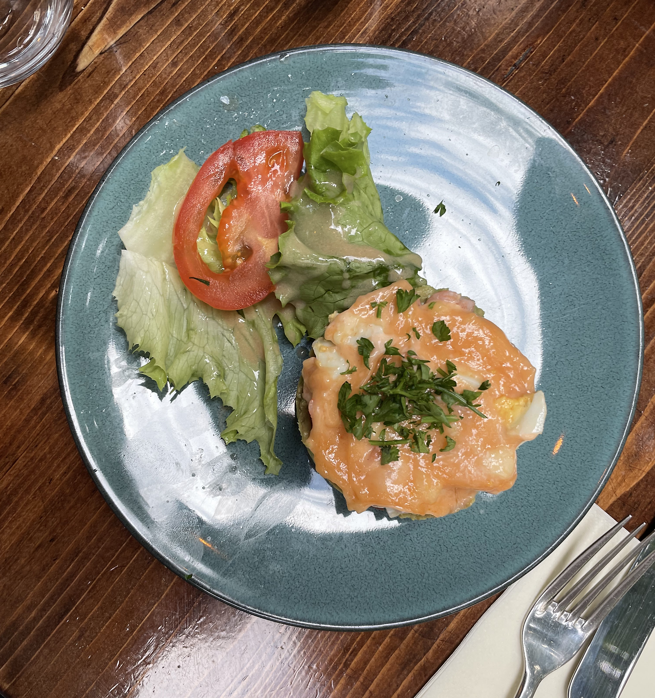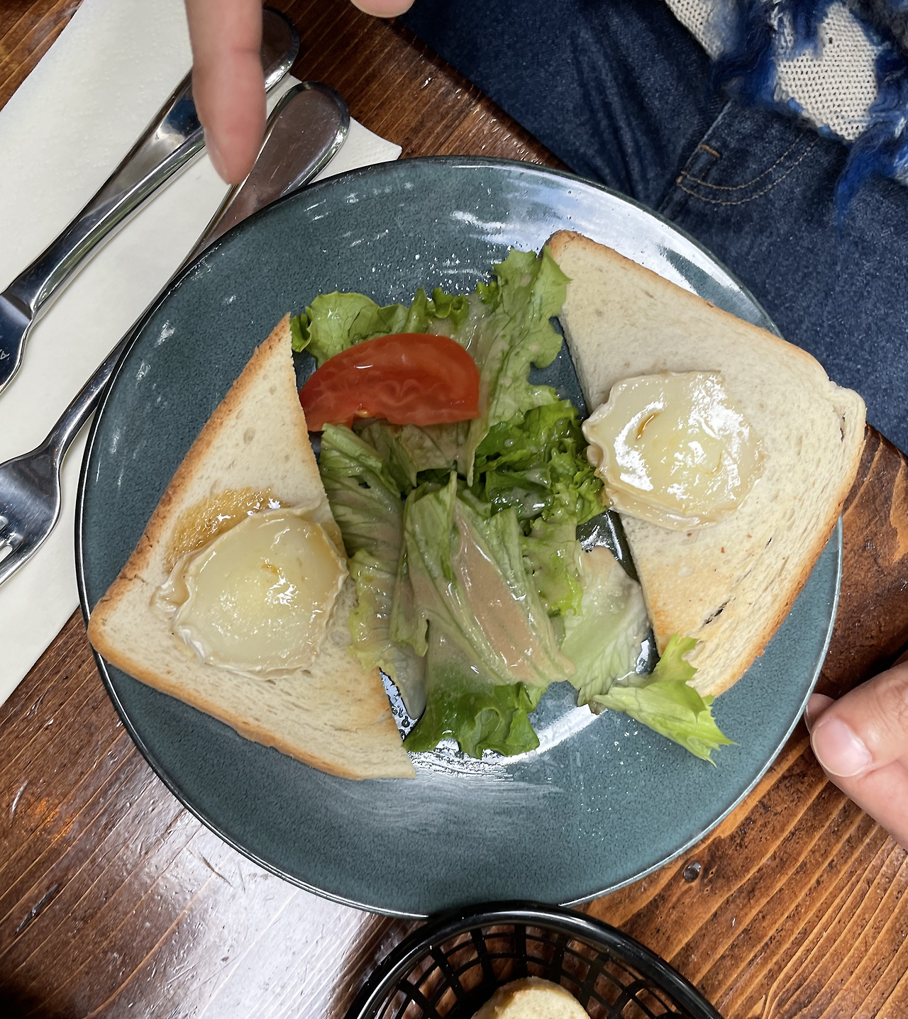 전채 요리로는 새우와 아보카도를 다져서 토마토 위에 올려낸 타르타르(Tartare)와 샐러드, 그리고 염소치즈 허니브레드가 나왔다. 새우아보카도타르타르는 가볍게 입을 즐겁게 해 주면서 신선한 느낌을 잔뜩 불어넣었고, 염소치즈를 사이에 낀 꿀을 바른 샌드위치는 고소한 단짠단짠의 정석이었다. 양고기를 구울 때 나는 특유의 우유, 치즈향을 좋아하는데 그와 비슷하면서 농축된 느낌이었다. 양과 염소의 특유의 냄새에 거부감이 있다면 싫어할 수도 있겠지만 우리는 오히려 그 흔치 않은 향이 즐거웠다.