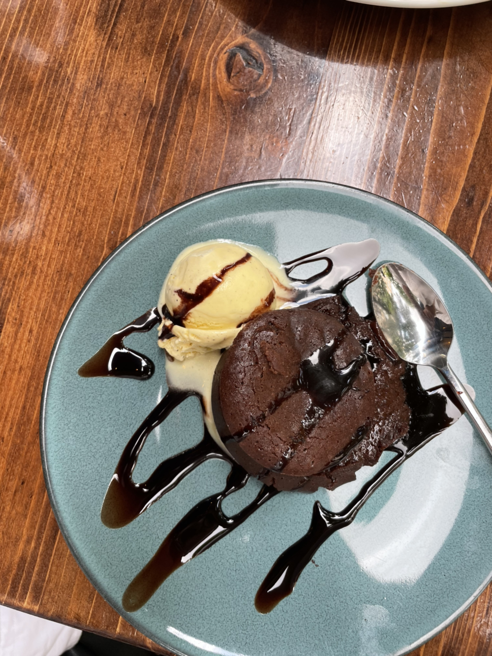 디저트로는 바닐라 아이스크림을 올린 퐁당 오 쇼콜라(fondant au chocolat)가 나왔다. 바닐라 아이스크림도 괜찮고 꾸덕하게 올라오는 퐁당 오 쇼콜라의 촉촉한 맛도 훌륭했다. 같이 나온 에스프레소를 함께 마시니 고소하고 달달한 조화가 딱 좋았다. 이날 점심 식사의 문제가 있었다면 아마 우리의 위 크기가 문제였을 것이다. 우리가 적게 먹는 편이 아닌데도 메인 요리를 먹고 나니 디저트를 끝까지 먹지 못할 정도로 배가 불렀다. 맛있는 걸 남기고 가려니 마음이 아쉬웠다.