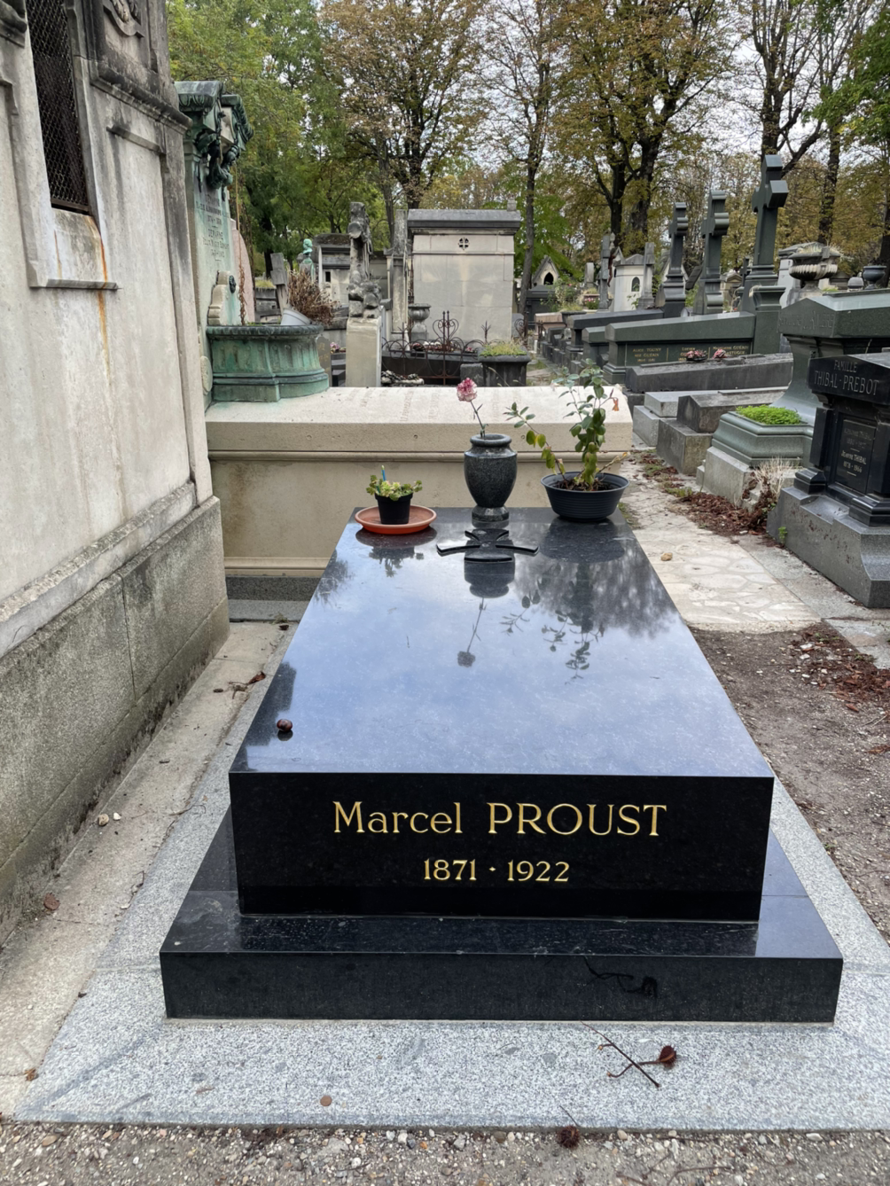 지나가다 <잃어버린 시간을 찾아서>(물론 읽진 못했다)를 쓴 마르셀 프루스트의 무덤과 인상주의 화가 모딜리아니의 무덤을 봤다. 다른 곳보다 깔끔하긴 했으나 생각보다 수수하고 꽃 몇 송이 없는 그들의 무덤을 보니 영원하다는 예술마저 덧없게 느껴졌다. 오히려 유명인의 무덤을 볼 때보다, 길을 걷다 뜬금없이 꽃다발로 뒤덮인 일반인의 무덤을 마주쳤을 때 그들이 받은 깊은 사랑과 견실한 삶을 느낄 수 있었다. 나치 희생자들을 위한 위령비도 곳곳에 하나씩 위치해있었다. 그곳엔 <이름 없이 전쟁 범죄에 의해 생을 마감한 희생자를 위하여>라고 적혀있었다.