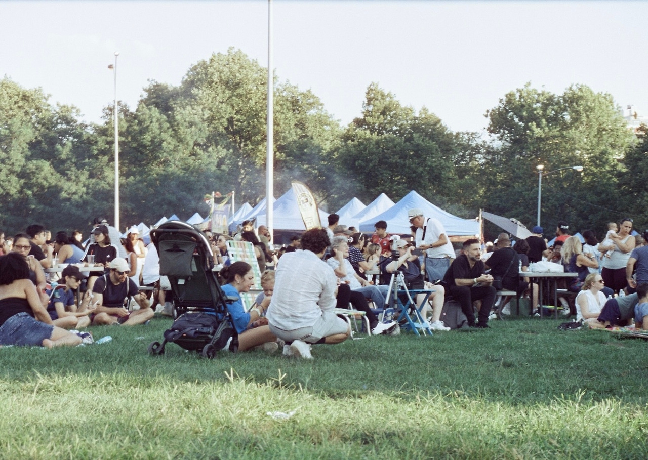야시장 옆에는 드넓은 풀밭이 있다. 야시장에서 산 음식으로 가볍게 피크닉을 즐길 수 있다.