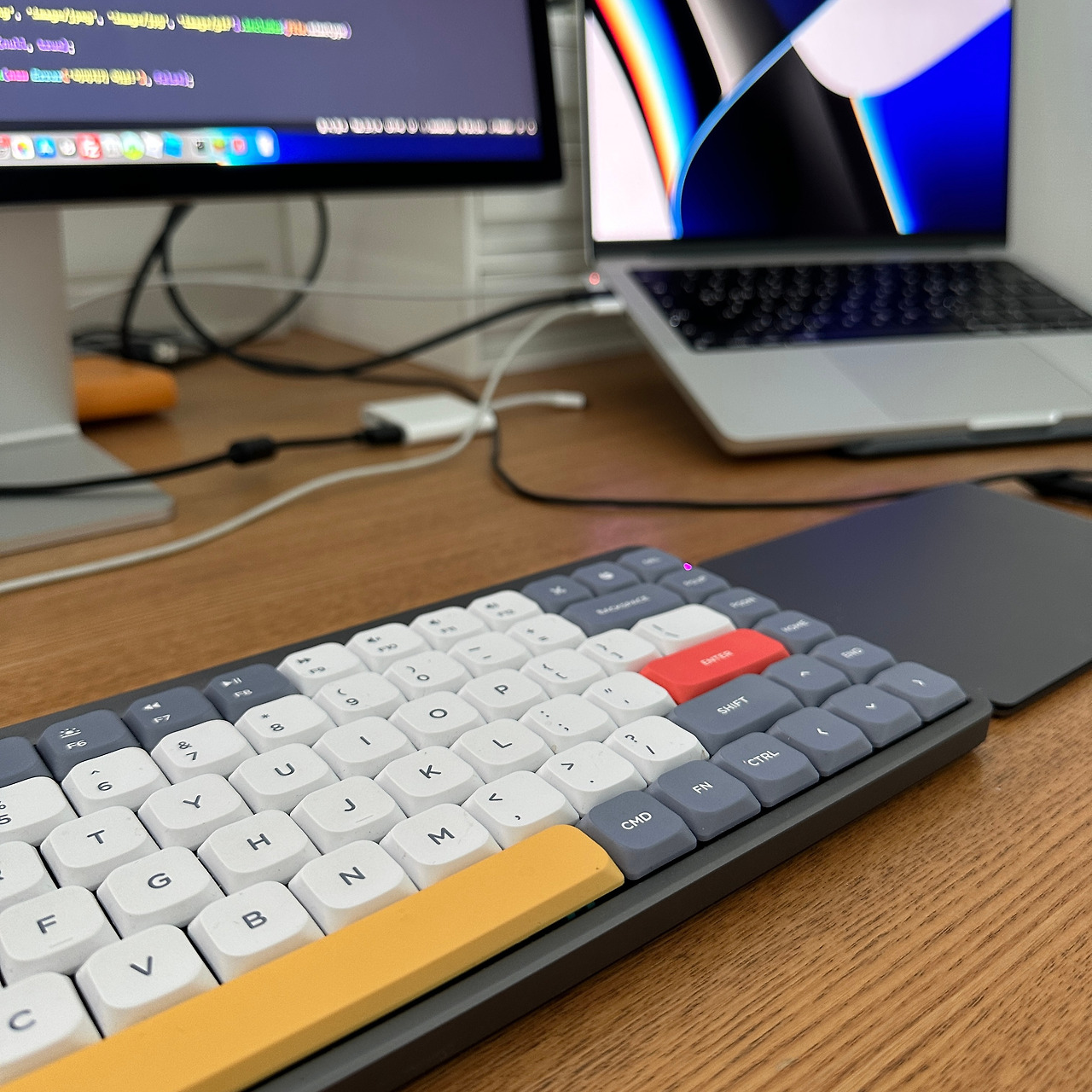 저의 키보드 여정은 흘러 흘러 지금은 NuPhy사의 Air75라는 모델을 사용하고 있습니다. 해피해킹 키보드는 그 감촉에 중독될 정도로 좋아했지만, 키 배열이 너무 특이하다 보니 아무리 써도 맥북 키보드만큼은 적응이 잘 안 되어서 다른 키보드를 찾을 수밖에 없었습니다. 해피해킹만 사용할 때는 모르다가 오랜만에 맥북 키보드를 두들겨보면 뭔가 생산성이 확 올라가는 느낌이었어요. 아무리 타건감이 좋다고 해도 생산성보다 중요할 수는 없기에 저에게 더 맞는 키보드를 찾았지요. 그리하여 현재 정착한 키보드가 바로 Air75입니다. 이건 가격이 10만 원대로, 해피해킹 키보드보다는 훨씬 저렴합니다.