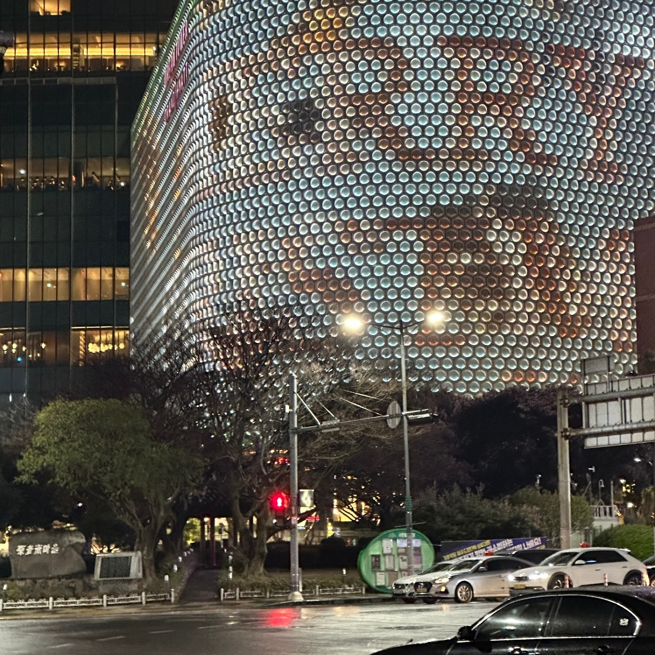 제주에도 나름 미디어 파사드를 볼 수 있는 곳이 있다. 제주에서 제일 높은 건물인 드림타워(하얏트 호텔).