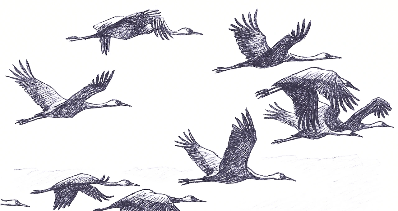 어느새 강 위로 날아오른 철새들이 제 페달링과 호흡을 맞추며, 한순간 동료가 된 듯 옆에서 나란히 날고 있었습니다. 저녁노을로 붉게 타오르는 코스모스와 은빛 억새는 바람에 흔들리며 길을 따라 물결치고, 그 위로 날아오르는 새들은 마치 하늘에 새겨진 악보의 음표 같았습니다. 꽃잎 하나, 날갯짓 하나가 바람에 닿을 때마다, 시간은 느리게 흘렀고, 그 장면은 마치 멈춰 선 풍경처럼 제 안에 머물렀습니다. 땅과 하늘이 맞닿은 그 자리에서, 나는 잠시 자유가 되었습니다. [주 1]