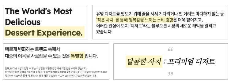 한 팀원이 커피와 디저트를 사 온 적이 있었다. 늘 그렇듯 일상적인 대화는 물 흐르듯 회의로 이어졌는데, 우리가 깨달은 사실은 디저트 카페 시장 1위 브랜드가 떠오르지 않는다는 것이었다. 관련 통계를 찾아봐도 디저트가 맛있는 카페에 대한 소비자 의견 정도만 있지, 확고한 1위 브랜드가 없었다.