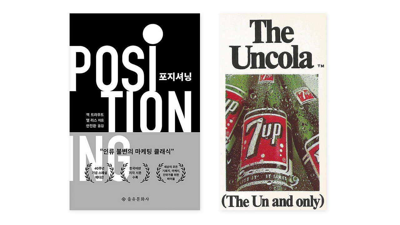 (좌) 알 리스, 잭 트라우트의 <포지셔닝> / (우) 세븐업의 <The Uncola> 광고