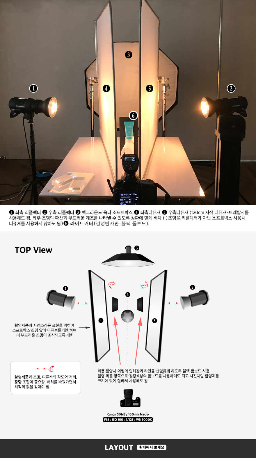 ( 제품 촬영 시 디퓨져의 크기가 클수록 반사면 정리가 편함 )