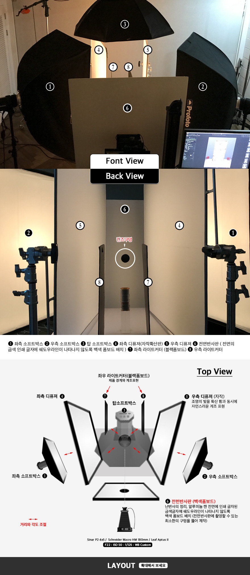 3. 탑 조명 (소프트박스) - 촬영제품의 상단 밝기
