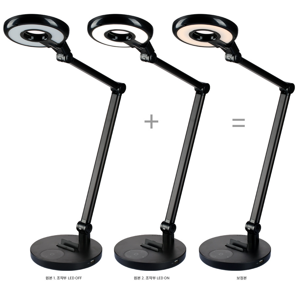 이번에 촬영하게 된 조명 스탠드는 LED 부분과 스위치가 존재하는 조작부분에 불이 점등됩니다. 그러나 LED 부분의 노출과 조작부분의 노출 차가 있기 때문에 조작부분에 노출을 맞춘 사진을 한 장 더 촬영하여 합성하였습니다.