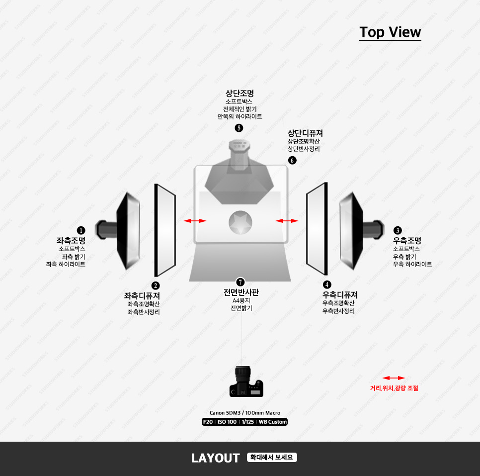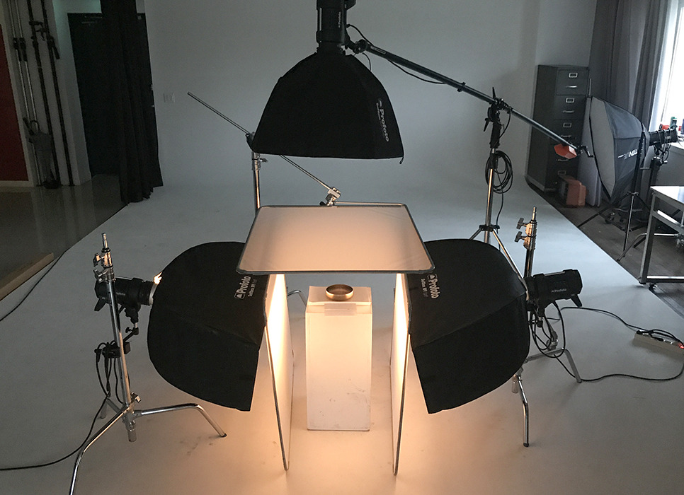 5. 상단 조명 - 소프트박스, 전체적인 밝기와 방짜유기 그릇 안쪽의 하이라이트를 표현