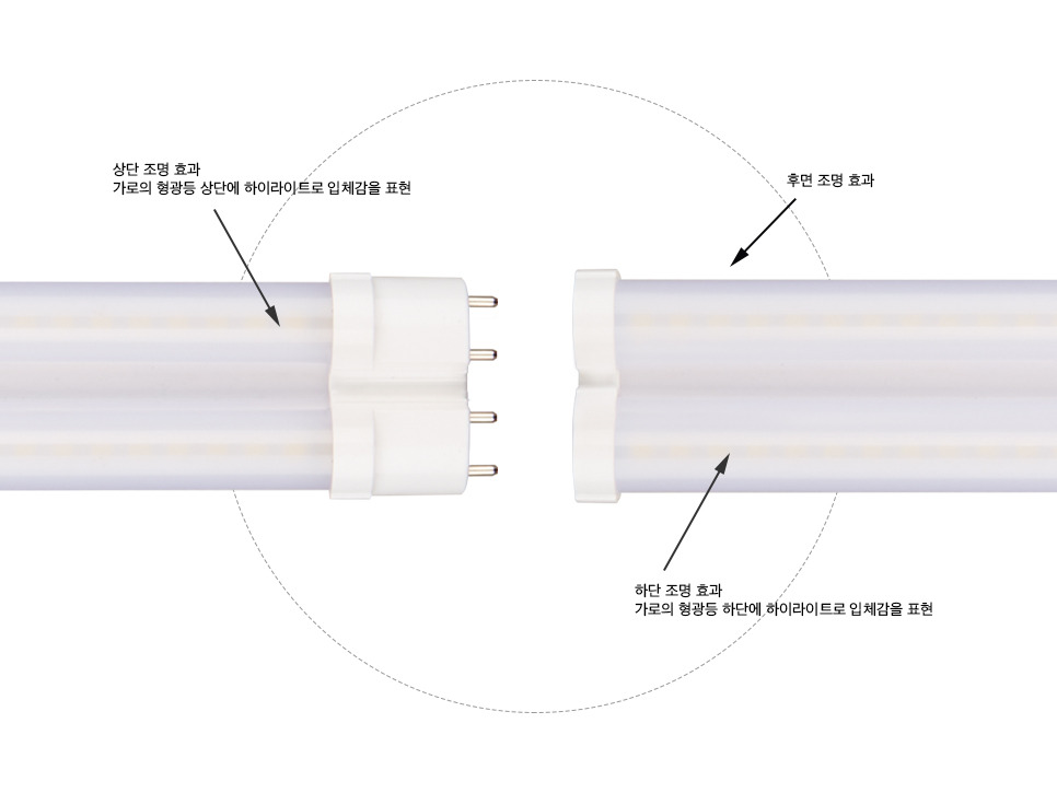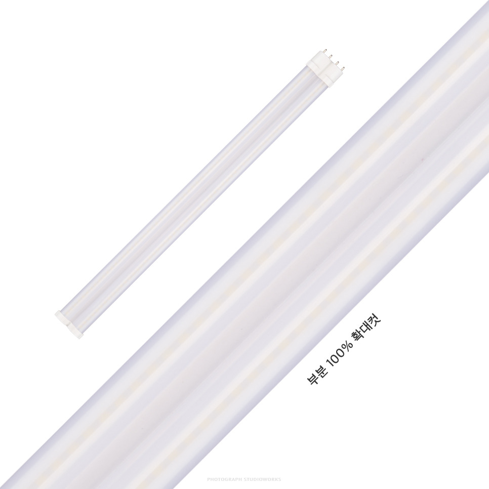 형광등은 발광되는 LED의 빛을 확산 시키기 위하여 밝은 톤의 불투명한 재질로 제작되어 있습니다. 그렇다 보니 촬영 시 노출이 오버라면 제품의 디테일이 표현되지 않을 수 있으므로 적당한 노출로 촬영하여야 합니다. 그게 여의치 않다면 제품의 디테일이 제대로 표현되도록 약간 어둡게 촬영한 뒤 후작업을 통하여 보정하기를 권장합니다.