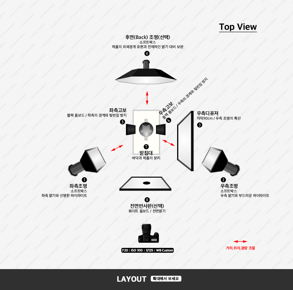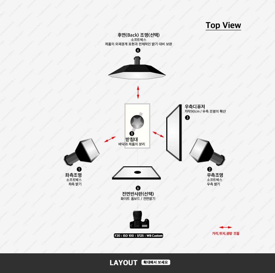 4. 후면(Back)조명(소프트박스) - 제품의 외곽 경계 표현과 전체적인 밝기와 대비의 보완