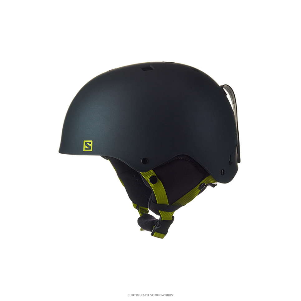 정확한 옆모습이 아닌 스키 안쪽이 약간 보일 수 있도록 촬영 요청이 있었습니다. 그러나 받침대를 이용한 촬영은 아래의 사진처럼 제품 중간에 기둥처럼 나타나기 때문에 사용할 수 없습니다. 그래서 결국 투명 낚시줄을 이용하여 헬멧 위에서 고정하여 촬영하였습니다. (낚시줄을 이용하여 제품사진을 촬영할 때는 촬영 시간 만큼이나 제품 거치에 시간이 많이듭니다. 또한 거치 후 흔들임이 정지될 때까지 기다린 후 촬영해야 합니다. 지랄맞죠. 낚시줄 ㅎㅎ )