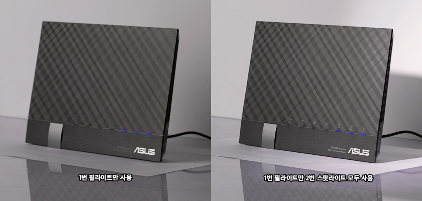 1번 필라이트만 사용 - 전체적으로 고른 빛도달-다소 밋밋함. 인쇄된 글자가 잘보이지 않음