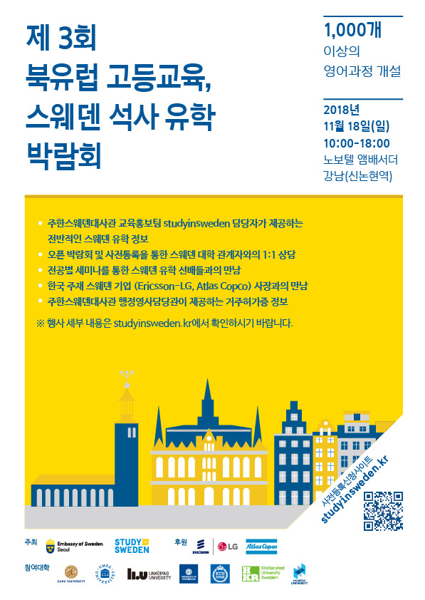 주한스웨덴대사관에서 주최하는 11월 스웨덴 유학 행사 총정리