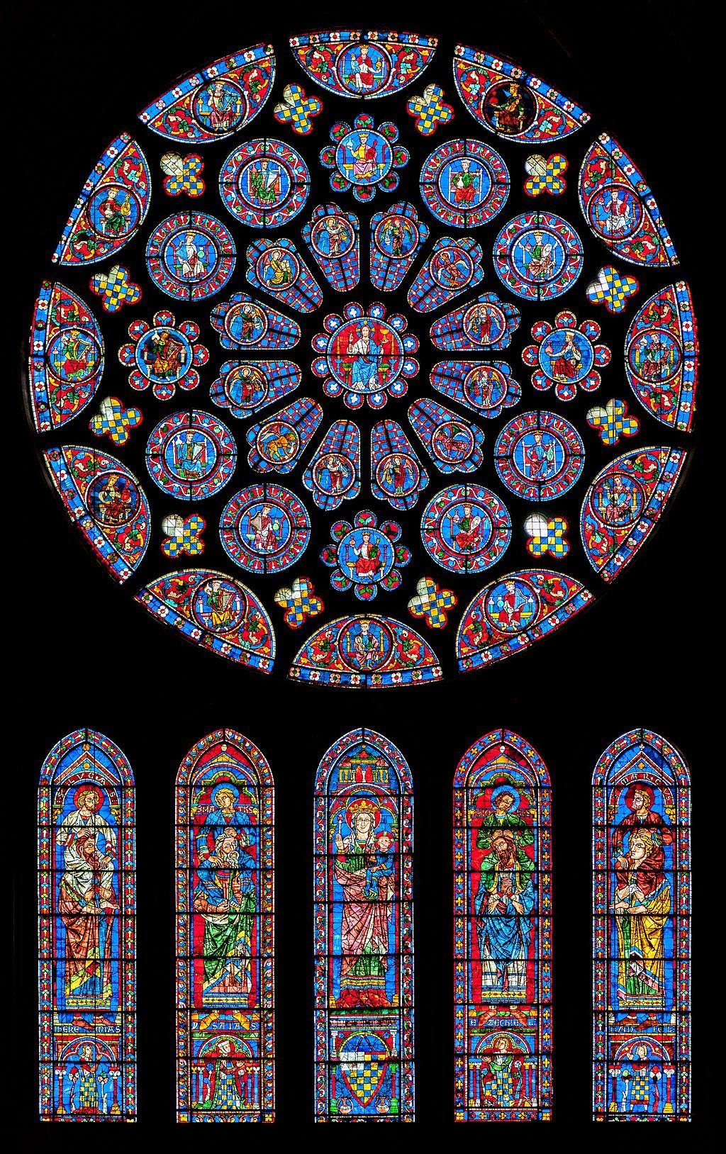 샤르트르 대성당의 스테인드글라스. 코발트를 원료로 한 '샤르트르 블루'는 고유명사가 되었다. (퍼블릭 도메인)