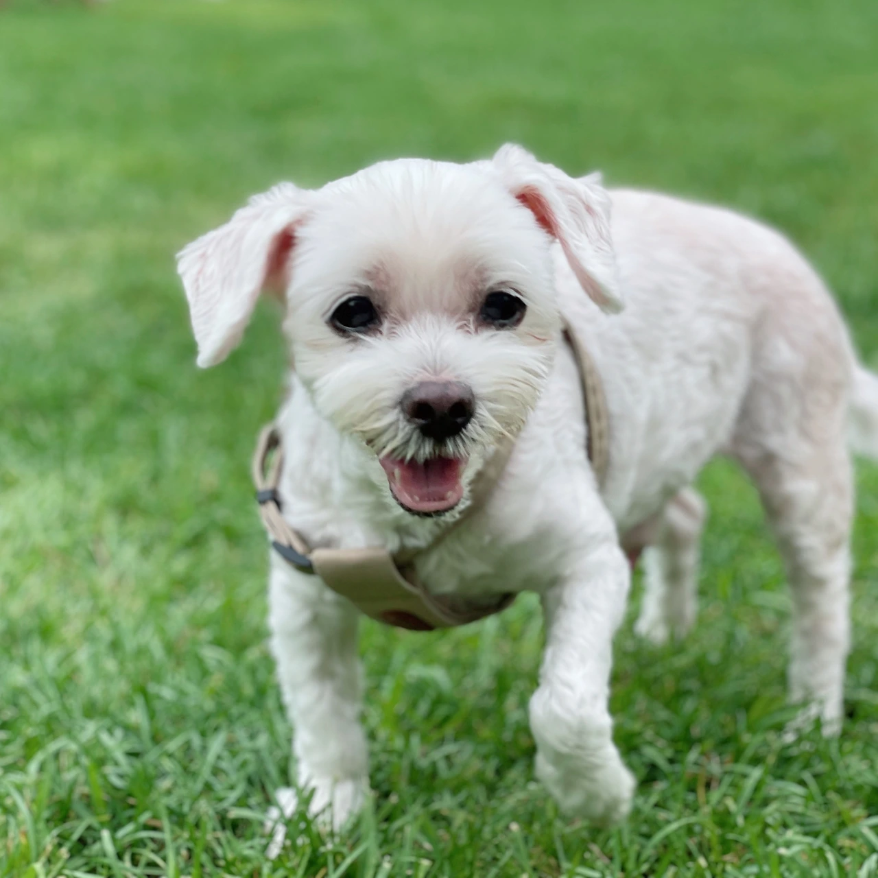 사람을 잘 따르고 온순함. 수컷. 중성화. 성기 돌출. 슬개골 탈구.