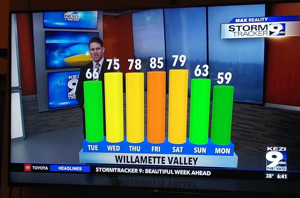 위 그림에서 발표자는 아마도 화씨온도로 한 주간의 날씨 예보를 보여주는 듯합니다. 하지만 발표자가 정확히 어떤 내용을 전달하려 하는지 파악할 수 있는 정보가 부족합니다.