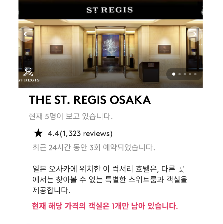 희소성(Scarcity)은 손실 회피 심리를 설명하는 데 아주 중요합니다. 소비자들은 저렴한 가격에 제품을 구매하거나 예약할 기회를 놓치지 않기 위해 서둘러 구매를 결정하는 경향이 있습니다. 또한, "현재 해당 가격의 객실은 1개만 남아있습니다"와 같이 남아있는 객실 수를 보여주는 방식으로 희소성을 강조할 수 있습니다.