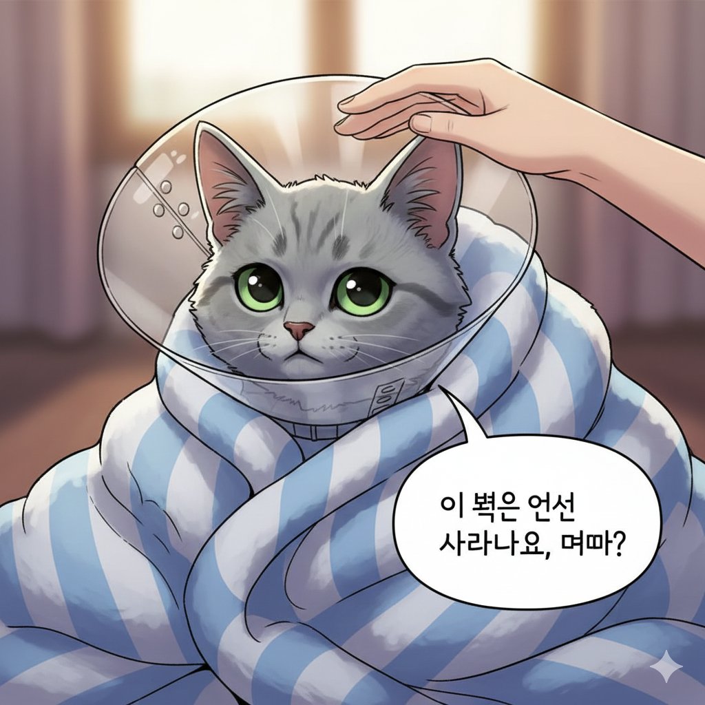 숨은 잘 쉬는지, 눈은 잘 뜨는지, 혹시 이 이상한 '투명 벽' 때문에 화가 나지는 않았는지. 나는 그 시선을 정면으로 받았다. 이건 단순한 항의가 아니라, ‘고양이의 존엄’을 선언하는 침묵의 외침이었다.