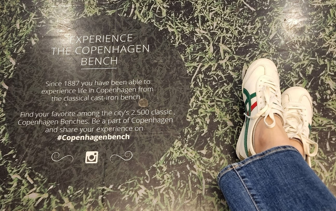 코펜하겐은 첫 방문이다. 자정이 다 되어 도착한 코펜하겐 공항에서 짐을 기다리며 벤치에 앉아 있자니 코펜하겐의 cast-iron bench를 경험해 보라는 공익광고가 발 밑에서 처음 방문하는 여행자의 호기심을 촉구한다.(주철로 만든 공공 벤치 디자인이 2,500개라는 건가. 역시 디자인 강국이다.)