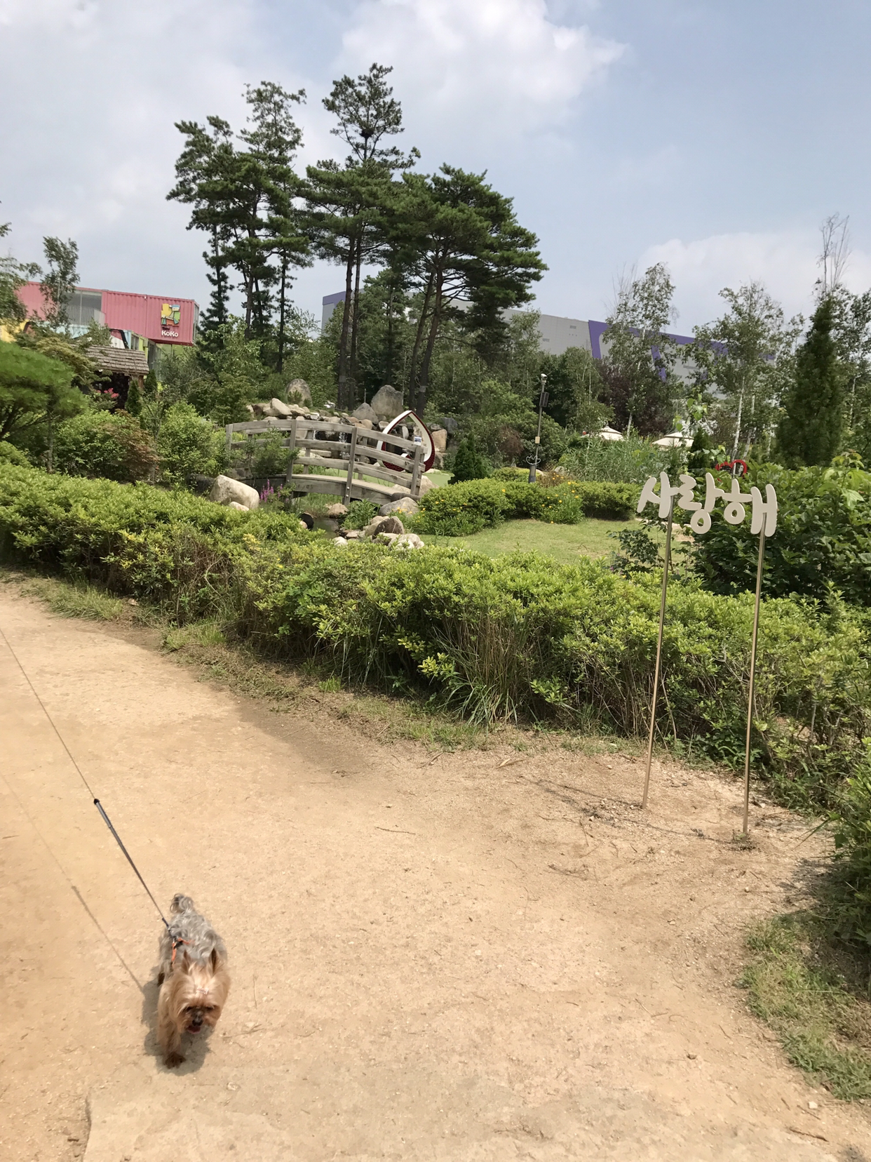 덕평 휴게소에는 애견 놀이터가 있고 산책로도 잘 되어 있고 야외 테이블도 많이 갖춰져 있어서 강아지와 함께 쉬어 가기 좋다.