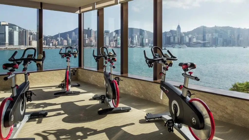 케리호텔의 수영장 뷰는 감동이다. 저녁시간 수영장에서는 바다 건너 센트럴의 야경을 마음껏 즐길 수 있다. 수영 하다가 나와서 베드에 누워서 야경을 바라본다.하루의 여행을 마무리하는 멋진 시간. 수영을 하고 나와서 피트니스 쪽으로 들어가며 작은 사우나가 딸린 샤워실을 이용할 수 있다. 물 속에서 차가워진 몸을 녹이고 한 칸씩 나눠져 있는 개인 샤워실에서 쾌적하게 샤워를 하고 파우더룸에서 머리 말리고 나오면 완벽한 마무리. 방에 가서 잠만 자면 된다. 샤워실에서는 생수와 타올, 슬리퍼가 제공된다.