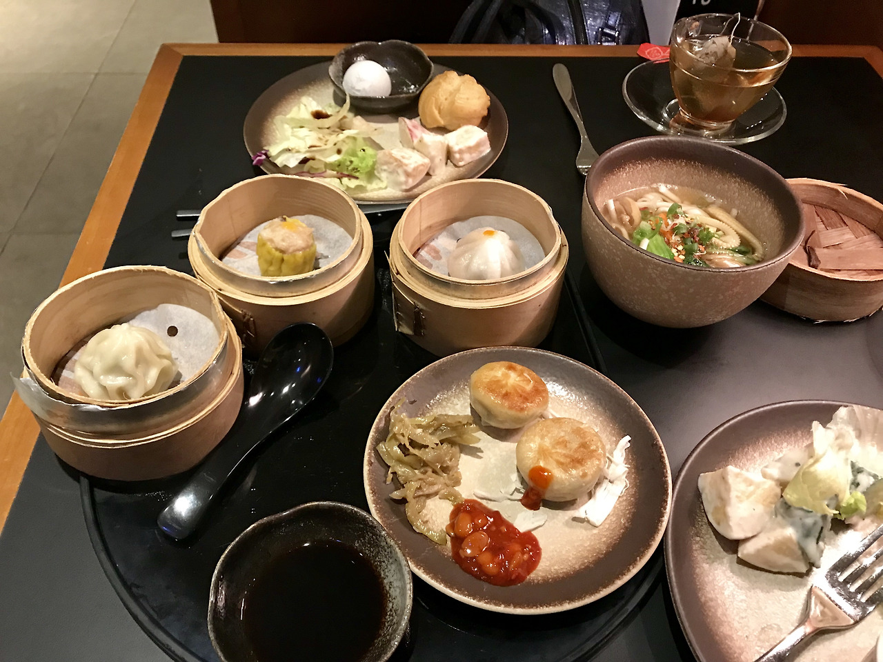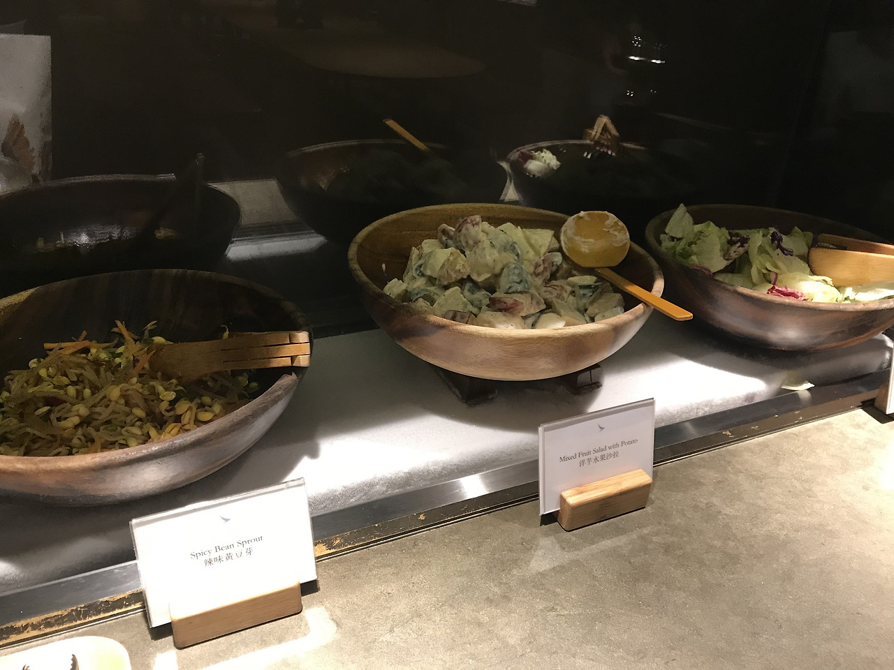 샐러드바, 티 코너, 딤섬과 누들을 주문하면 만들어주는 누들바가 있다. 딤섬을 주문하면 귀여운 딤섬 그릇에 한 개씩 담아 준다. 누들도 가볍게 맛만 볼 수 있게 한 젓가락씩 나온다. 케세이패시픽 홍콩 라운지보다 규모가 크진 않지만 알차고 음식 맛도 좋았다.