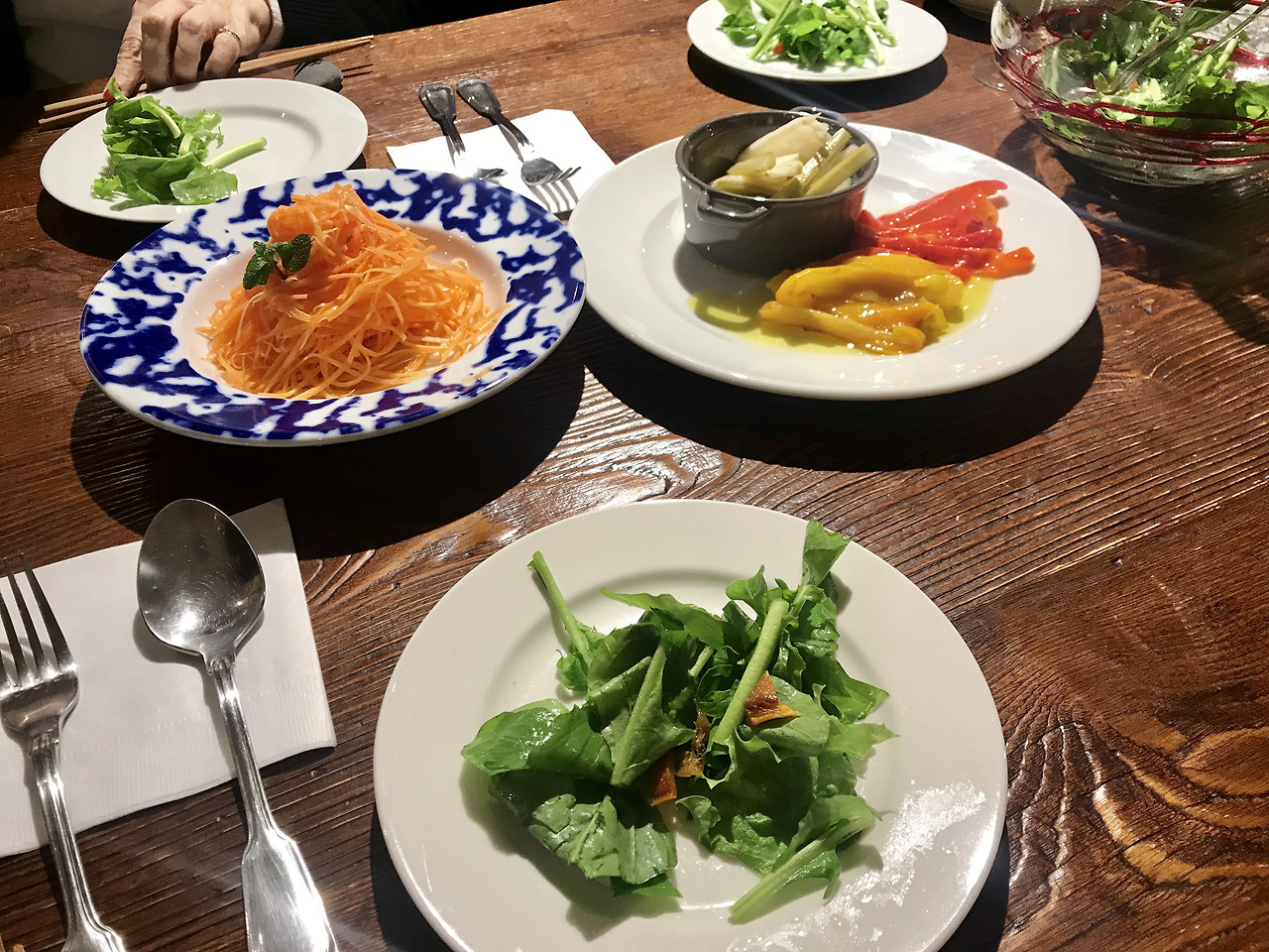 모든 재료는 오가닉을 사용하고 양념과 조리는 심플하다. 재료가 신선하고 재료 하나하나의 맛이 잘 전해진다. 루꼴라와 건과일만을 이용한 샐러드는 산뜻하고 올리브와 간장으로 조리한 굴요리는 담백하다. 올리브 오일의 향이 매우 좋다. 해산물과 채소 요리가 많다.