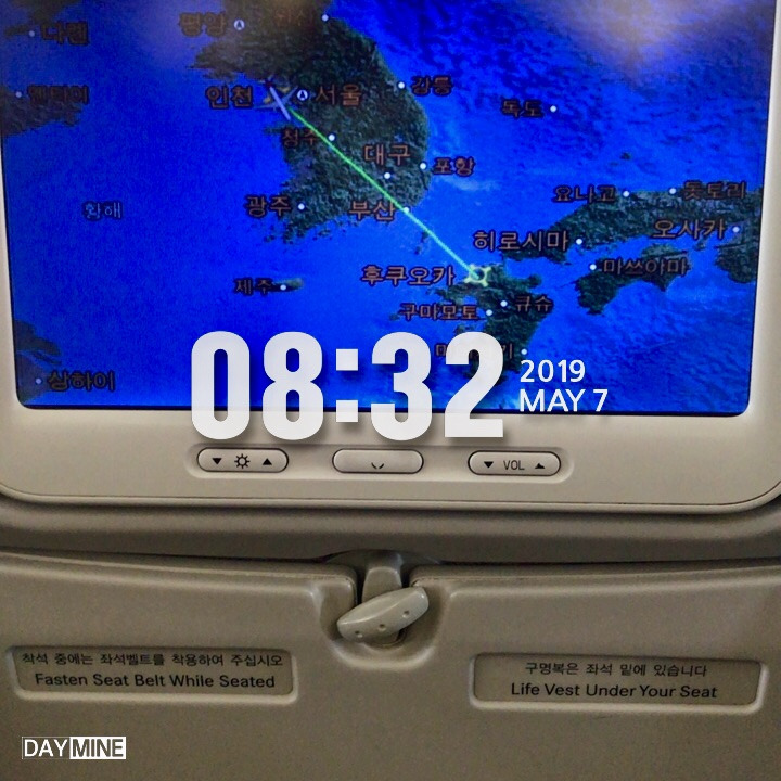도쿄나 오사카 같은 일본의 다른 도시는 가 봤지만 정작 가장 가까운 큐슈의 후쿠오카는 처음이었다. 지도를 보니 직선거리로 비행 구간이 굉장히 짧았다. 국내선을 타는 느낌이었다. 비행기는 9시 다 되어 이륙했고 간단한 기내식을 먹고 영화를 반 정도밖에 못 봤는데 후쿠오카 공항에 도착했다. 착륙한 시간은 10시 조금 넘은 시간이었다. 1시간 반 정도 걸린다고 했지만 비행한 시간은 1시간 정도 밖에 안 되었다. 골든위크가 끝난 다음 날이라 후쿠오카 공항도 한가했다. 입국 수속하고 짐 찾고 나오는데 30분도 안 걸렸다.