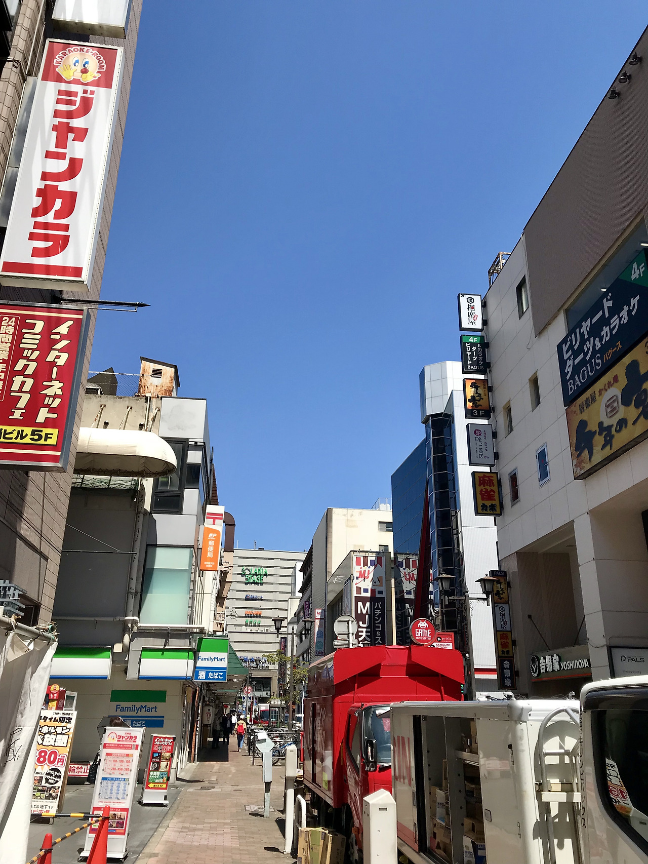 호텔 체크인하고 가방을 맡기고 나와서 호텔과 같은 건물인 솔라리아 플라자를 돌아다녔다. 호텔이 있는 6층에는 핫케이크로 유명한 호시노 커피를 비롯해서 다양한 레스토랑이 있고 아래층에는 의류, 가방, 신발, 화장품 매장이 있었다. 위 쪽으로 영화관도 있었다. 솔라리아 플라자 건물 밖으로 나와서 백화점으로 둘러싸인 텐진 거리를 둘러보다가 다이묘 거리 쪽으로 갔다. 로밍 신청을 하지 않고 자동 로밍으로 했는데 네트워크 연결이 잘 안 되어서 검색이 필요할 때는 백화점 건물로 들어가서 와이파이를 이용했다. 다이묘 거리의 잇푸도 본점을 찾아갈 때도 건물 안에 들어가서 와이파이를 켜고 구글 지도를 캡처해서 갔다. 건물 안은 어디든 와이파이가 잘 연결되었다.