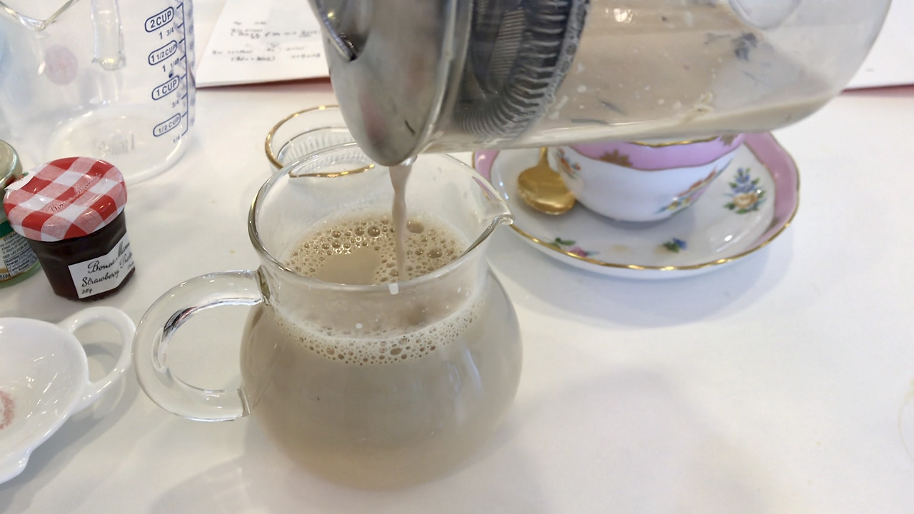 차의 향이 우유에 잘 배이도록 5분정도 두었다가 거름망에 걸러서 찻잔에 따른다.