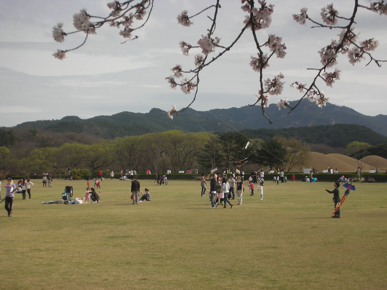 미추왕릉 지나 아늑한 솔숲 사이 청량한 공기를 마시면서 걷다 보면 대능원 정문에 도착. 문을 나서면 눈앞으로 동부사적지대가 그림처럼 펼쳐진다. 드넓은 잔디밭에는 사람들이 한가로이 휴식을 취하고 있고, 아이들은 연을 날리고 있다. 계림, 내물왕릉, 그리고 아직 주인이 밝혀지지 않은 고분들이 보이고, 그 뒤로는 반월성과 남산이 겹쳐있다. 내가 경주에서 가장 사랑하는 풍경이다.