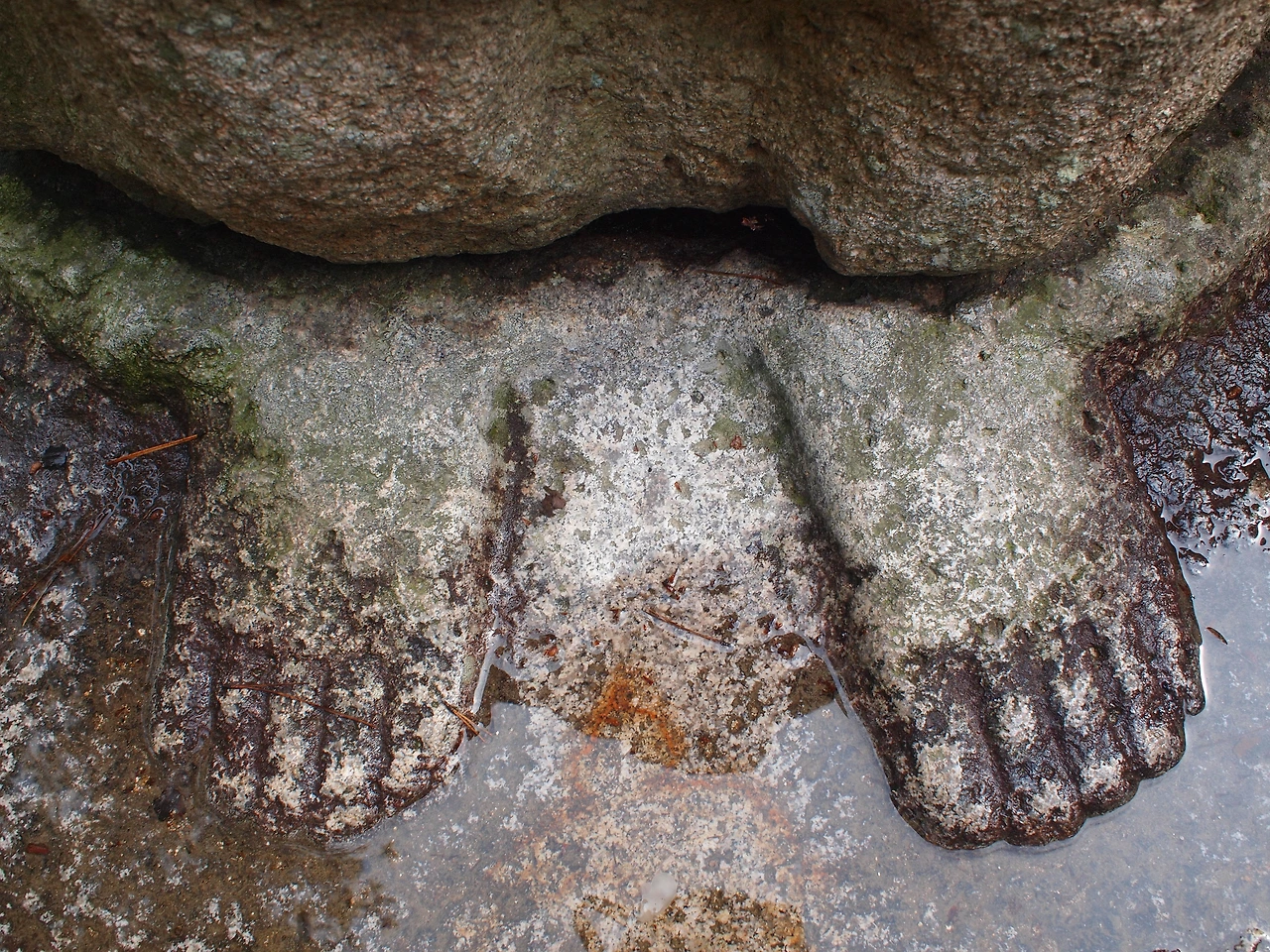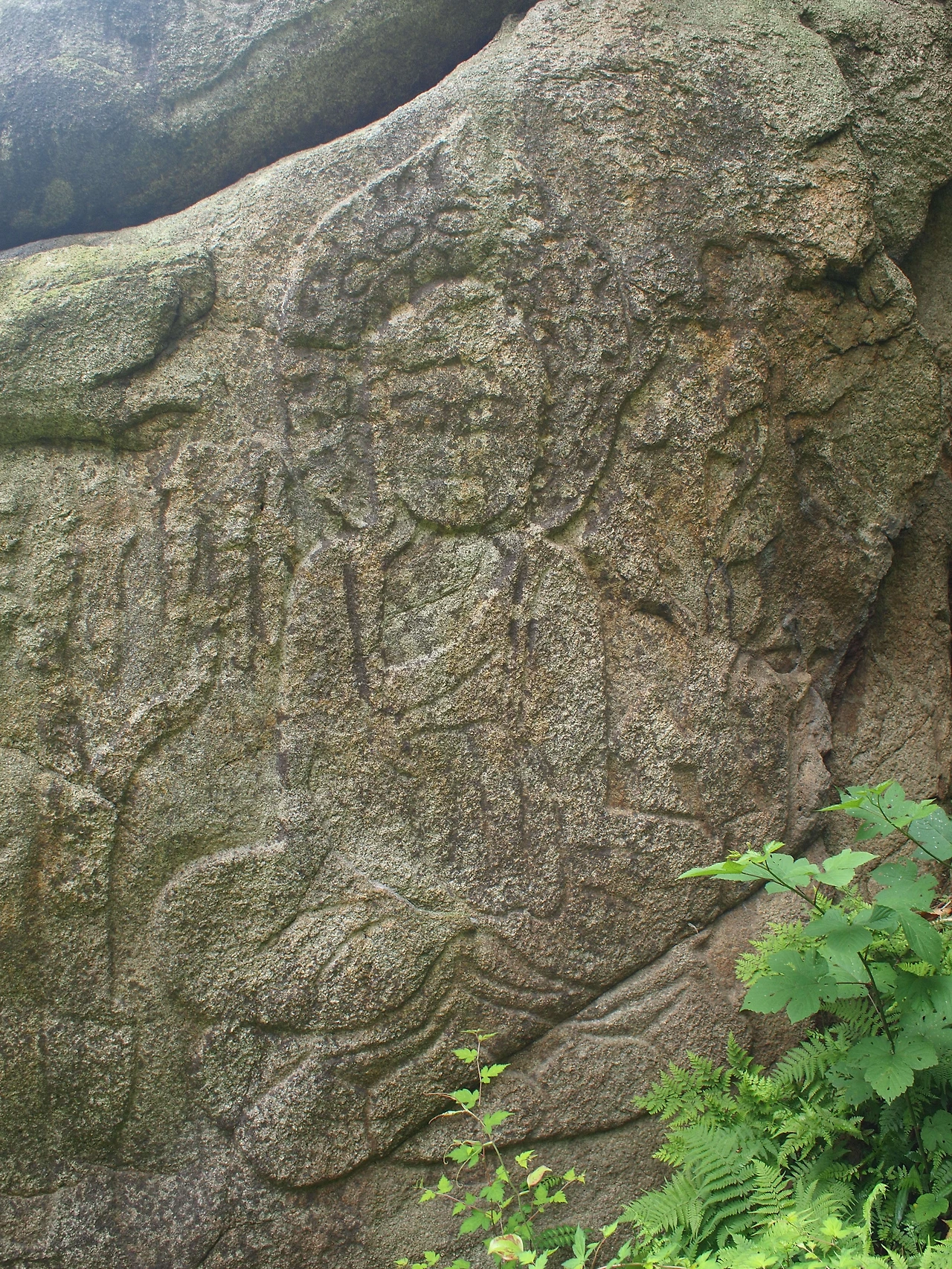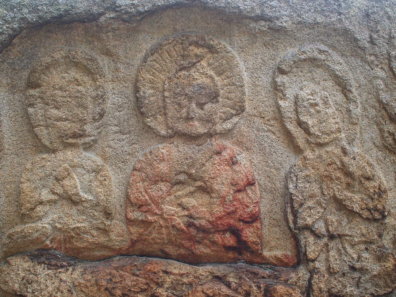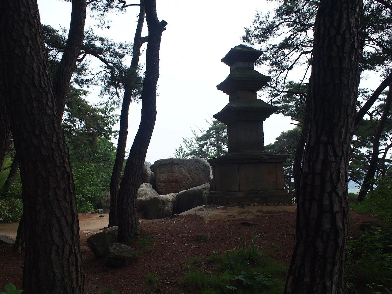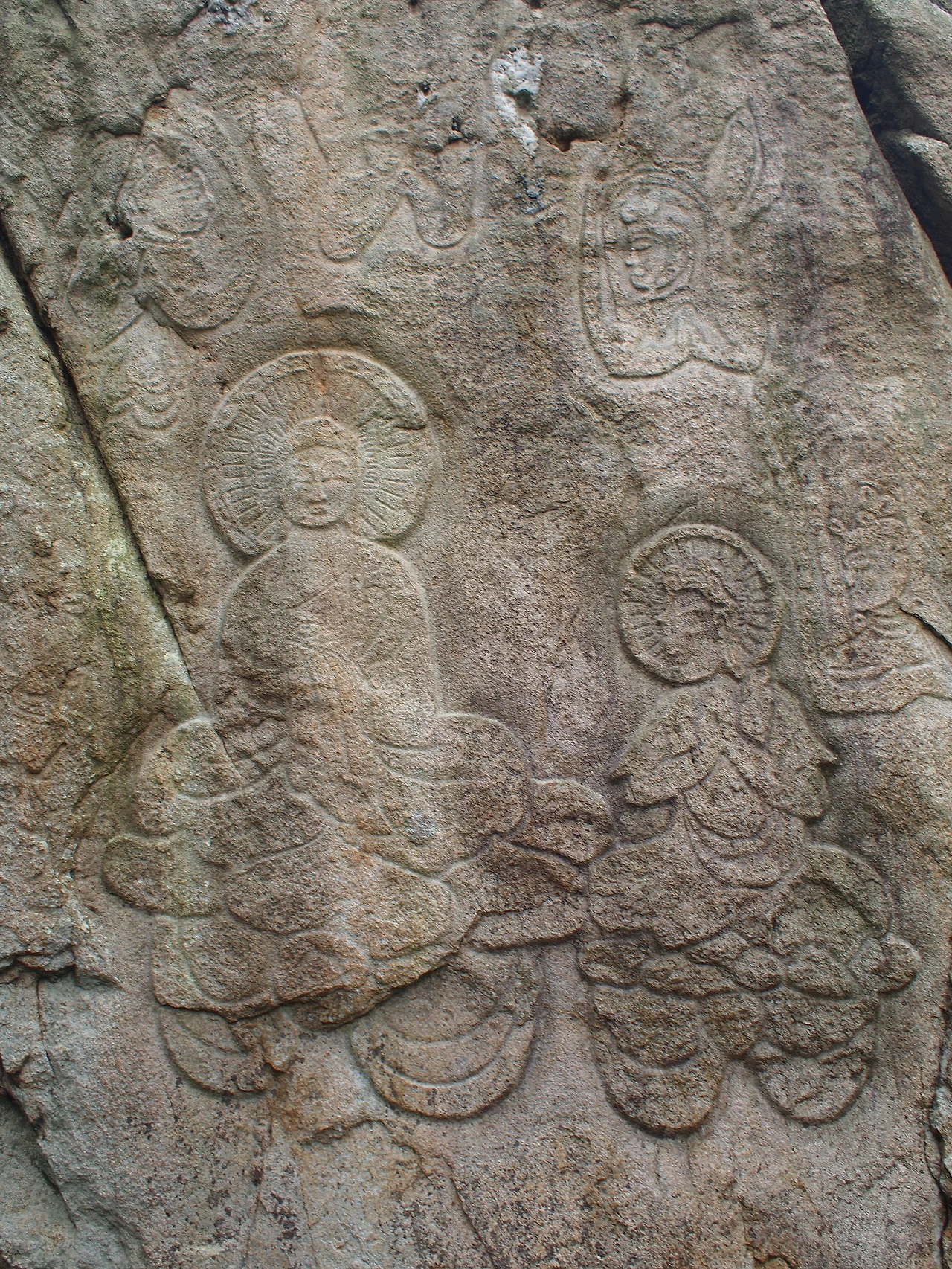 자 이제 반시계 방향으로 돌아보자. 동쪽, 남쪽, 서쪽 면에 부처상과 승려상, 그 외에도 다양한 형상들이 빼곡히 조각되어 있다. 남쪽에는 3층 석탑과 얼굴이 깨진 부처님 한 분도 서 계시고. 그중에서도 가장 인상적이었던 건 얼굴 깨진 여래상의 발. 비가 와서 발이 바닥에 고인 물에 반쯤 잠겨 있는데 천진난만한 꼬마가 물장난하고 있는 듯한 모습이 연상되어 혼자 웃었다.
