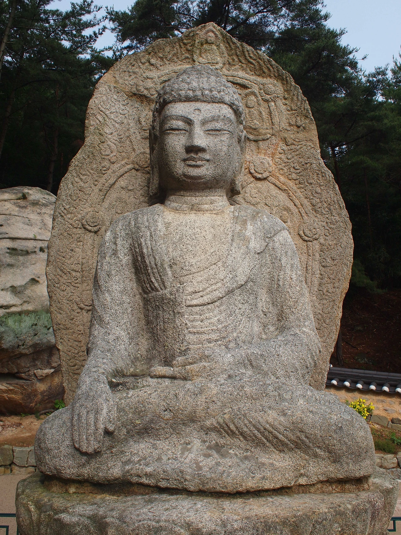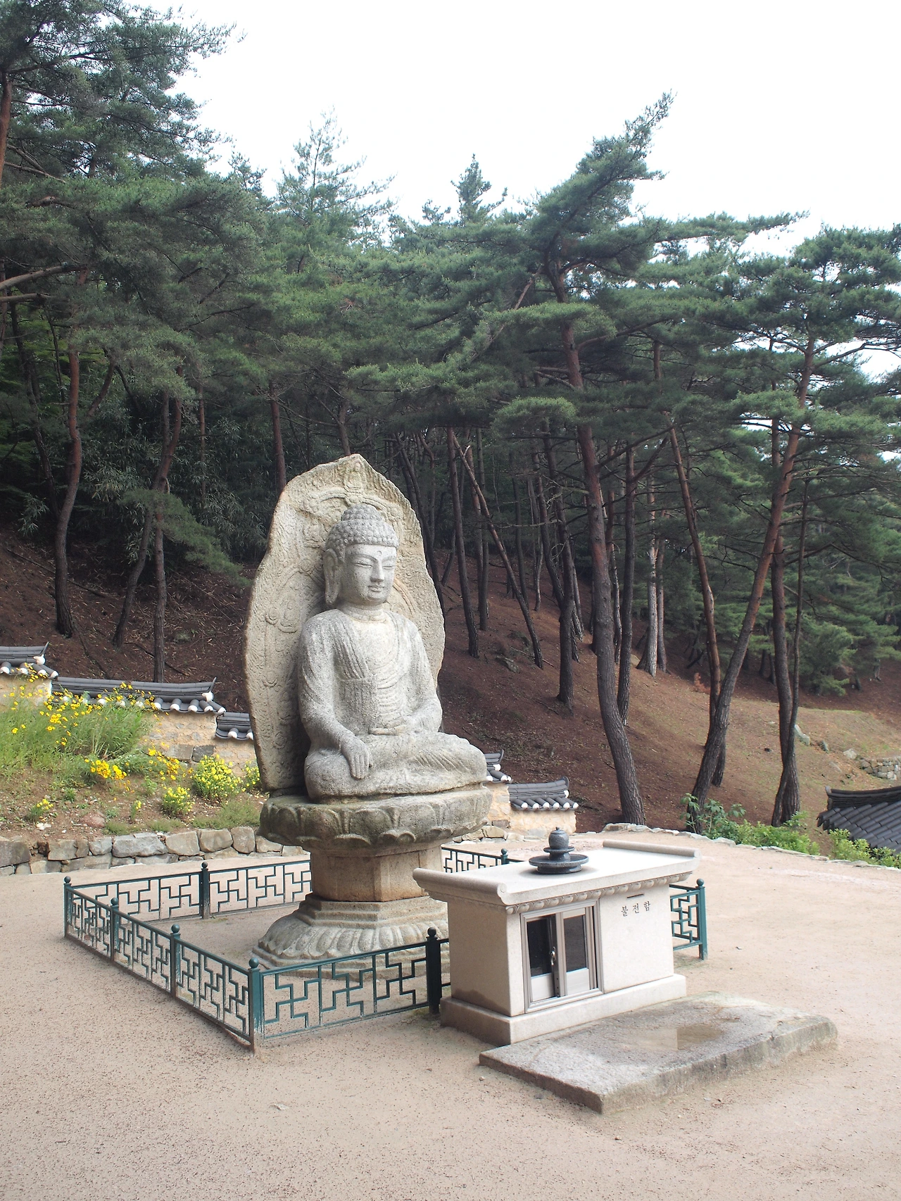 조금 더 올라가니 울창한 소나무들 사이로 보리사가 보인다. 비구니 스님들이 수도하는 곳이라 그런지 절이 정갈하다. 건물들도 다 최근에 지은 것이라 깨끗하지만 특별한 건 없다. 그럼에도 이 절에 오게 된 건 바로 대웅전 왼쪽에 있는 삼성각 뒤편 언덕바지에 앉아 계신 잘생긴 석조여래좌상 때문이다. 통일신라 후반기를 대표하는 석불좌상으로 보물 제 136호.