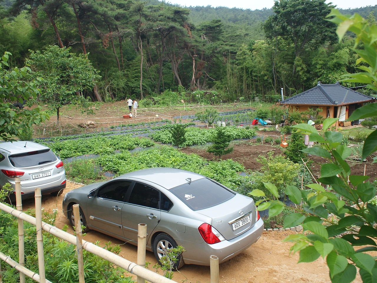 부처바위를 보고 내려오는 길. 나무 사이로 보이는 집 한 채가 내 눈길을 끌었다. 아담한 한옥집에 꽤나 넓은 텃밭. 나중에 세 식구가 살 집을 상상해본 적이 많았는데, 딱 내가 그리던 그 모습 그대로였다. 그런데 자동차가 있고 일하시는 분들의 모습을 보니 현지분은 아닌 듯하다. 귀농하신 분들일까. 아님 인근 도시에 사는 분들인데 주말에만 와서 농사짓는 분들일까. 부럽다.
