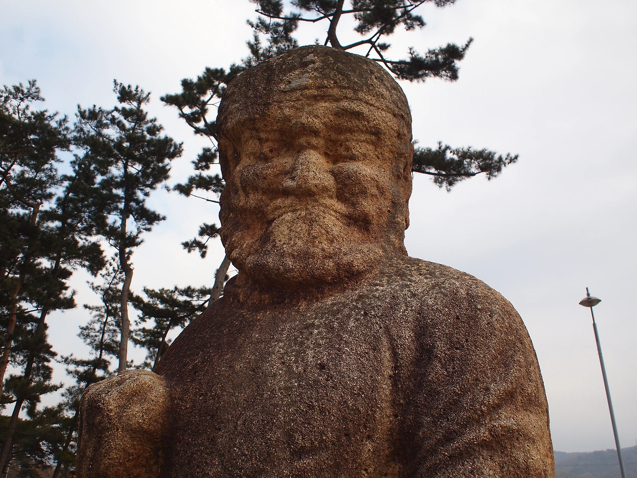 무엇보다 능을 바라봤을 때 오른쪽에 서있는 무인상이 걸작. 자세히 보자. 먼저 얼굴을 보시라. 항우의 절명시 한 구절인 ‘역발산혜기개세’처럼 산을 뽑고 천하를 호령할 듯한 힘과 기개가 느껴진다.