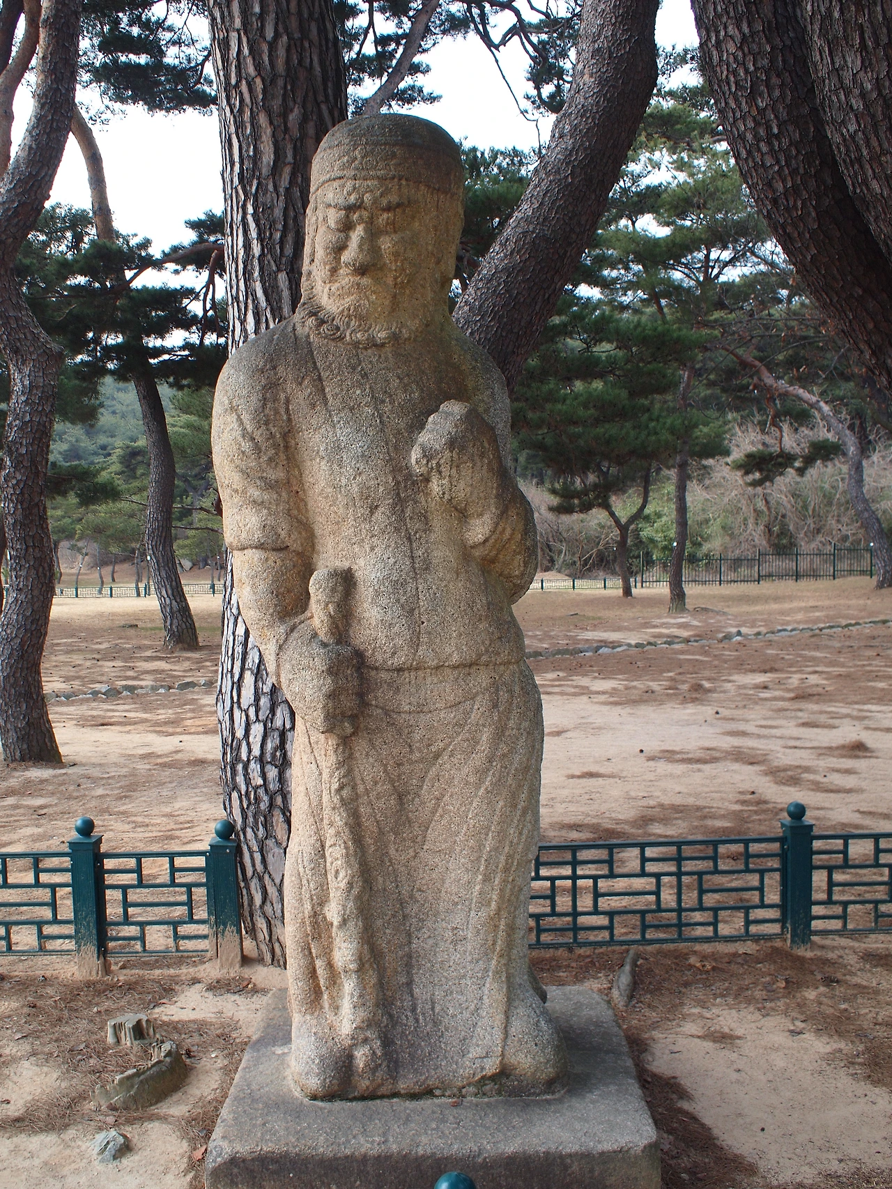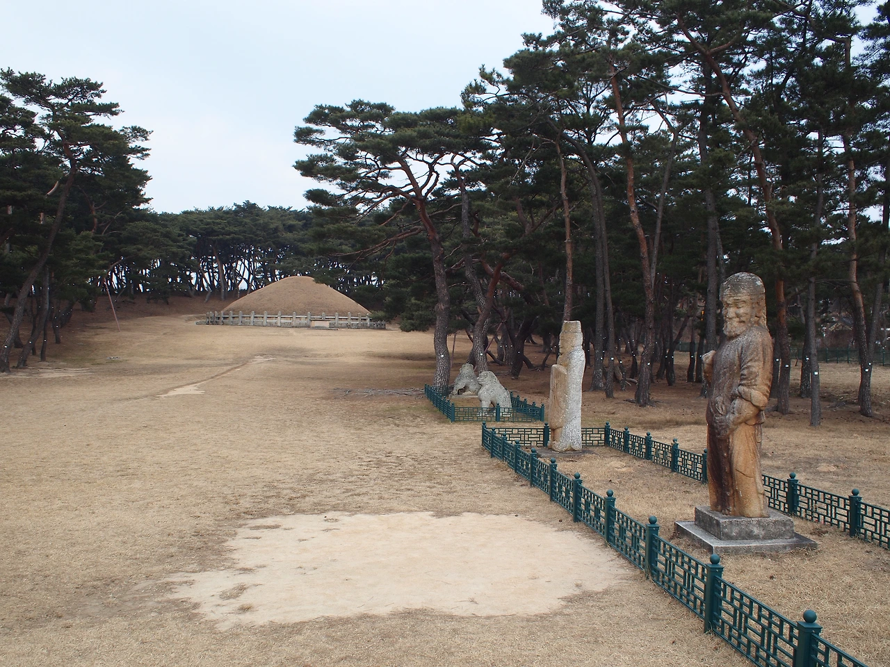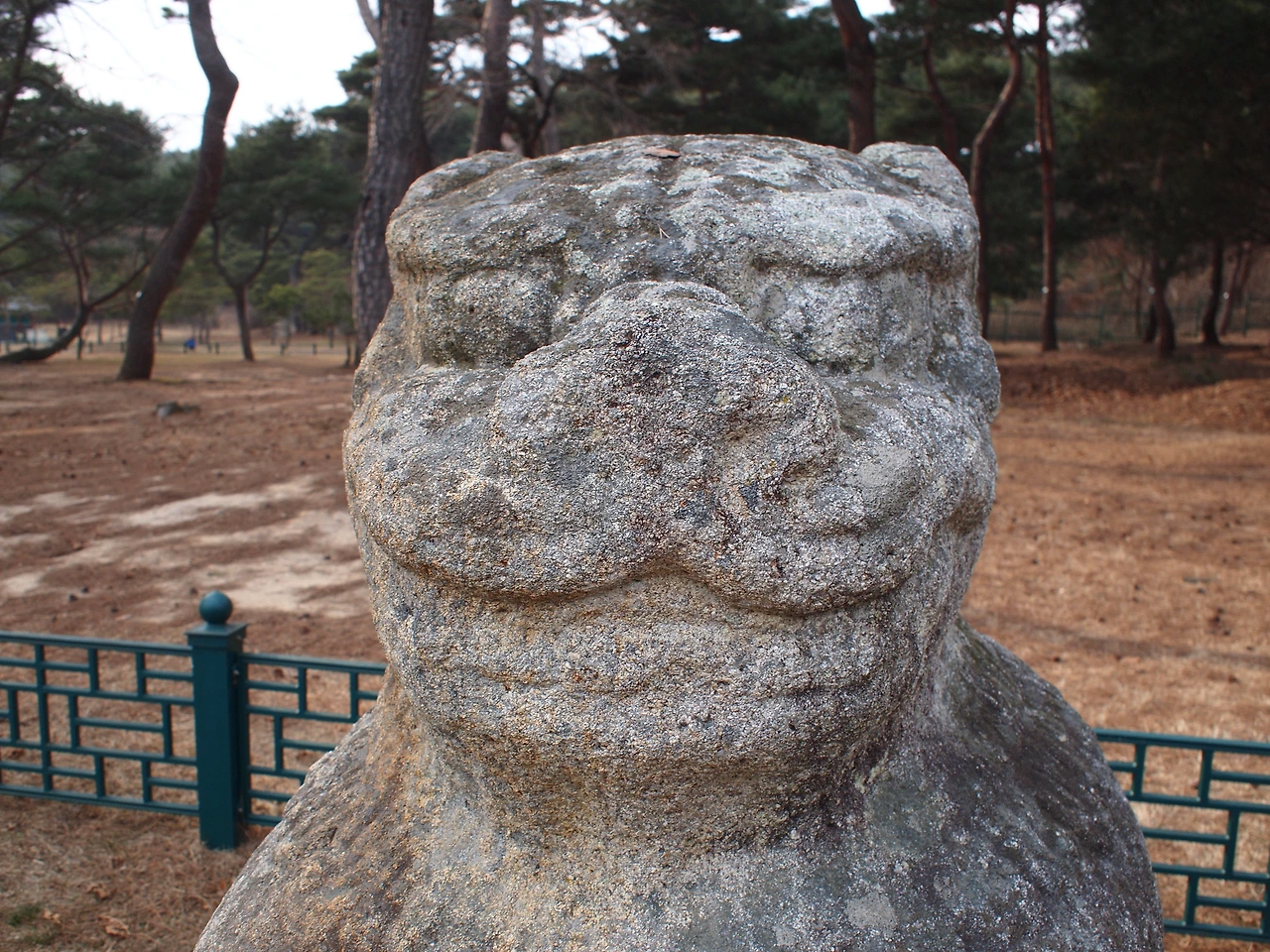 그 중에서도 가장 인상적인 것이 능역 초입에 호위하듯 서있는 무인상. 카리스마가 어마어마하다. 무덤에 누워 계신 분이 누군진 몰라도 발 편히 뻗고 주무시겠다. 그 어떤 흉악한 악귀가 와도 거뜬히 막아낼 듯 하다. 이 정도는 되야 왕릉을 지키는 보디가드라고 할 수 있지.