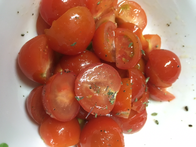 먼저 재료 준비. 방울토마토 잘라서 바질가루 뿌리고 올리브 오일 섞어줬다. 파프리카도 있길래 작게 잘라 뒀다. 물론 시금치도 깨끗이 씻어서 물 빼두고. 소세지나 베이컨도 있으면 구워 주시라. 없으면 안 넣어도 된다.