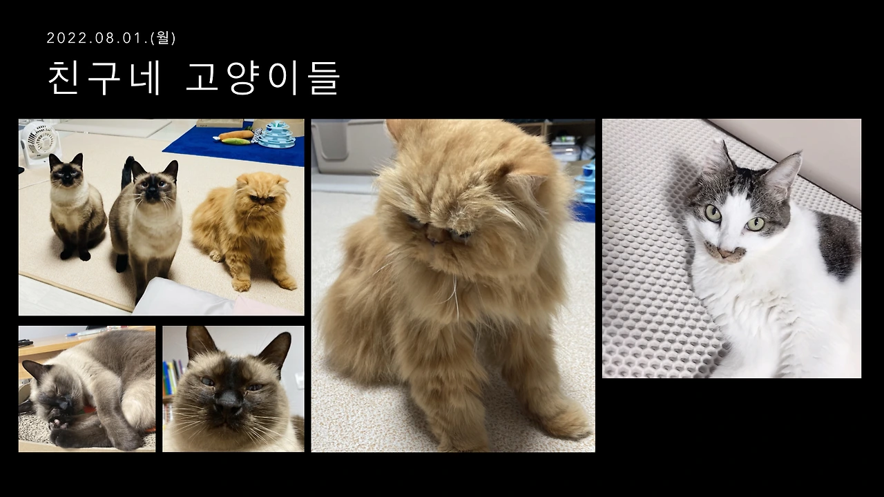 마지막으로 너희들에게 보여주고 싶은 사진은 이거야. 그치~ 귀엽지? 선생님이 방학 때 청주에 있는 친구네 집에 놀러갔다왔는데, 친구가 고양이를 네마리나 기르거든.