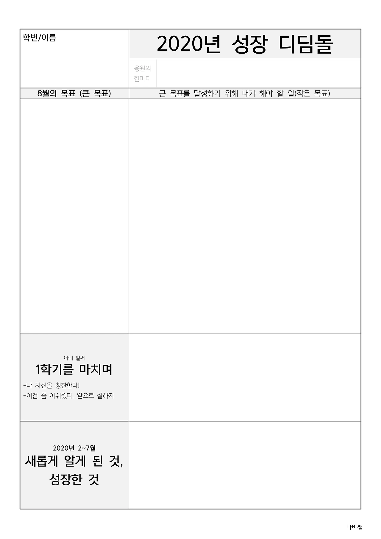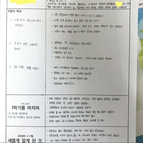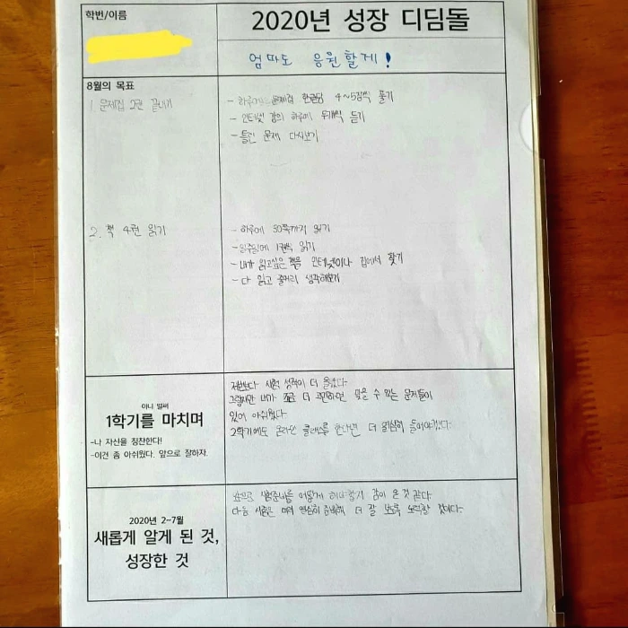 아래 사진은 이번 1학기를 마무리하면서 여름방학 직전에 우리 반 학생들에게 한 번씩 작성하게 한 학습지이다.