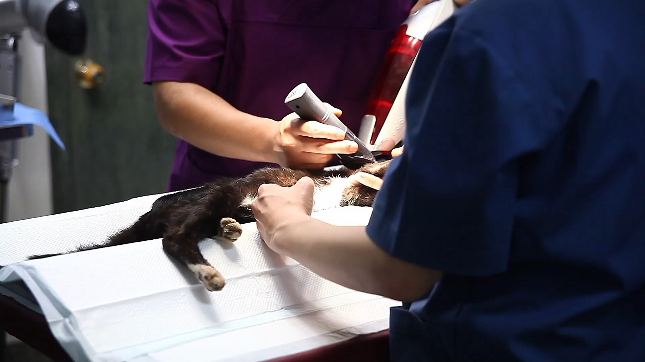 수술은 다리를 절단하고 절단 부위를 봉합하는 방식으로 진행되었다. 큰 수술인 만큼 시간도 오래 걸렸으며 3명의 수의사 선생님이 나서서 산이가 건강을 되찾을 수 있도록 최선을 다해 주었다.