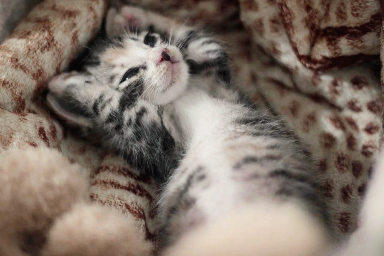 처음 눈을 뜬 아기 고양이는 만세를 불렀습니다.