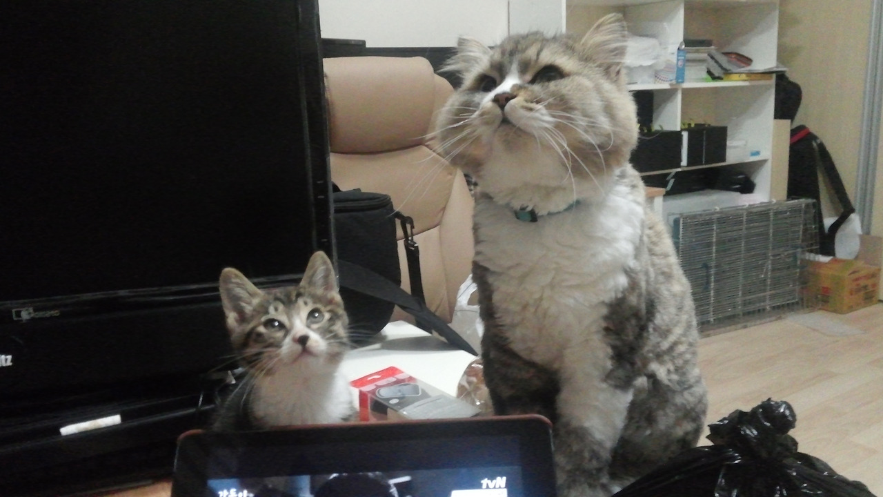 이미 사무실에는 먼저 살고 있던 아이들이 있었는데 처음엔 경계하고 숨어있더니 어느새 금방 적응을 하고 사무실에서 대장 노릇을 하려고 들었다. 사무실 직원들과도 금방 친해져서 키보드나 마우스를 밝고 지나다니거나 사무실 한 복판에서 대자로 누워 자는 등 완벽히 적응을 했다.