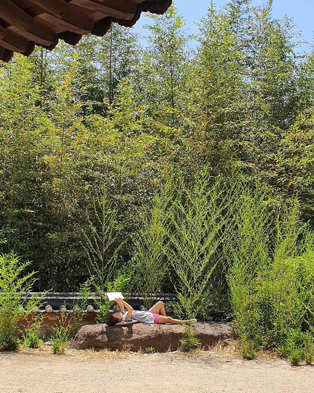 각자 원하는 차를 앞에 두고 각자 원하는 책과 노트를 쥐고 앉았다 누웠다 느린 시간을 보낸다. 사방이 새소리에 눈앞을 가로지르는 나비들. 쨍한 빛은 따뜻했고 대나무 잎이 바람에 사각대는 소리는 꼭 꿈처럼 평화로웠다. 우연히 고른 책이 마음에 들어 햇살 아래 한참 시간을 보냈다. 여전히 생생하게 행복한 감각. 그래, 우리는 이런 순간들을 만나러 여행을 떠나지.