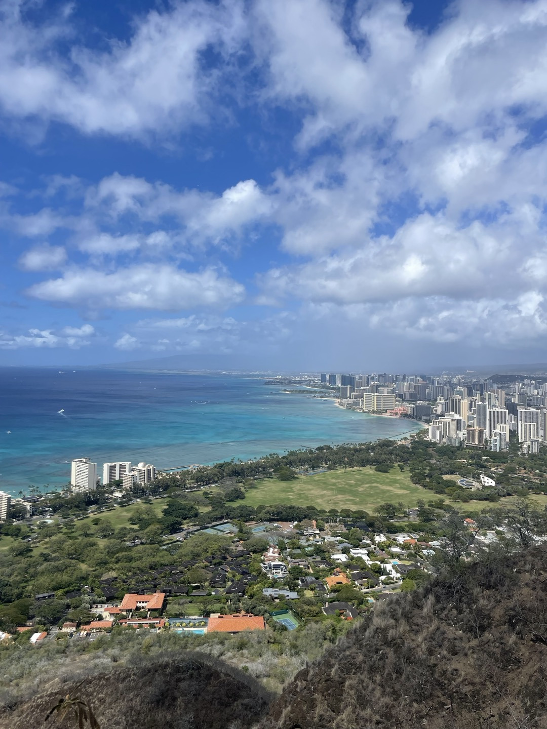 다이아몬드헤드는 쉬운 하이킹 코스이다. 왕복 2시간이면 충분할 것이다. 사실 올라가면서 내가 왜 왔지라는 생각을 안 한 것은 아니다. 그렇지만 주변 사람들의 에너지를 느끼며 열심히 따라갔다. 이 계단만 올라가면 된다. 힘겹게 올라가고 고개를 드니 정말 멋진 풍경이 펼쳐지고 있었다. 내가 하와이에 있으면서도 하와이에 있는 게 믿기지 않았다. 꿈속, 소설 속에서만 느낄 수 있는 멋진 풍경이었다. 모든 것이 완벽했다.