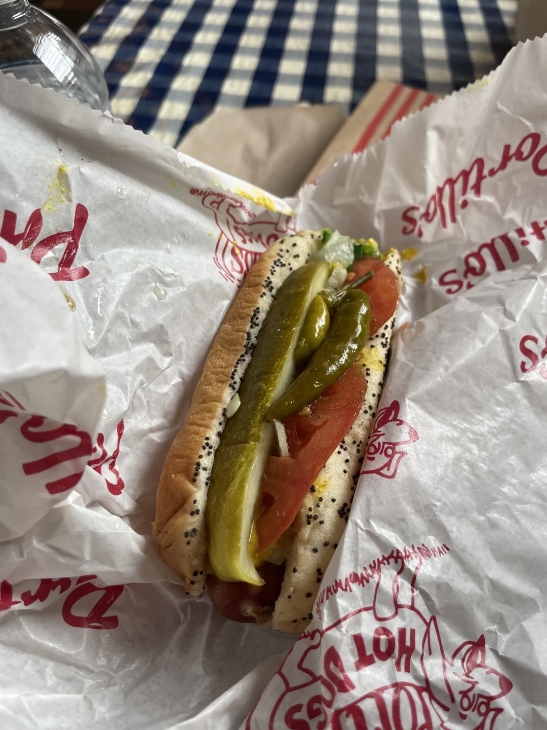 오... 정말 통피클 핫도그처럼 생겼다. 엄청난 피클의 존재가 나를 압도한다. 조심스레 한입을 먹어본다. 흠... 피클 맛 밖에 안 난다. 피클을 빼고 다시 먹어보았다. 이제 진정한 핫도그 맛이 느껴진다. 빵이 정말 따뜻하고 부드러웠다. 소시지도 짜지 않고 적당히 감칠맛이 느껴졌다. 개인적으로 통피클은 옆에 빼두고 느끼할 때쯤 한입씩 베어 먹는 게 좋은 방법인 것 같다. 먹으면서도 이거 내일 떠나기 전에 먹어도 좋겠다는 생각을 했다.