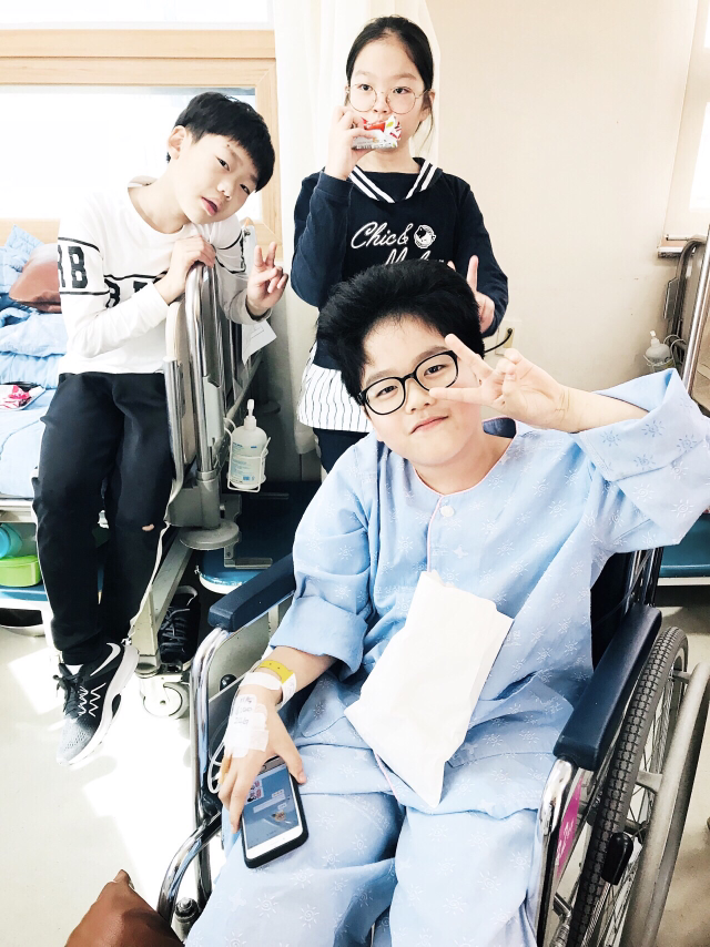 보름 입원했다가 이번에 퇴원했는데 휠체어 타고 등교하는데 친구들의 도움을 많이 받았어요.