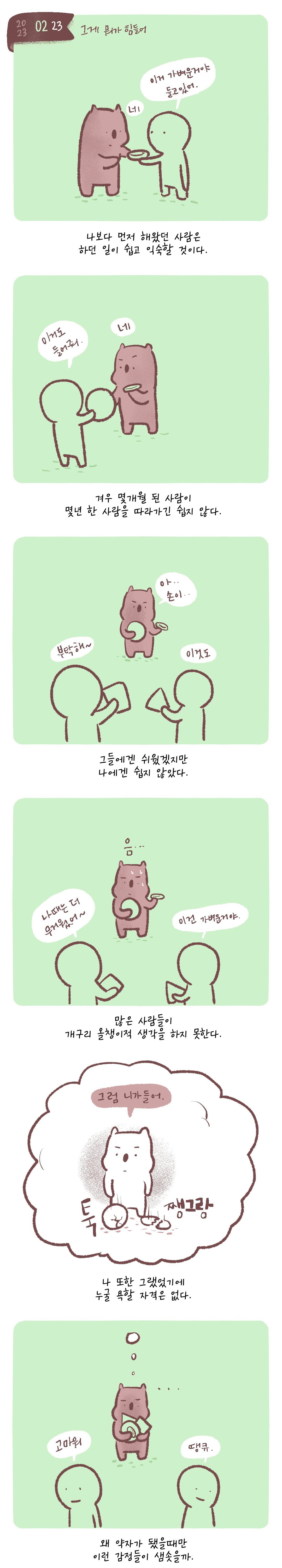 <섭섭하지 않은 쿼카>그림일기 웹툰 작가이자 운동을 좋아하는 일러스트레이터입니다. 따뜻한 그림을 그리고 싶습니다. 작가님의 글에 따뜻함을 더하고 싶으신분들은 제안해주세요.