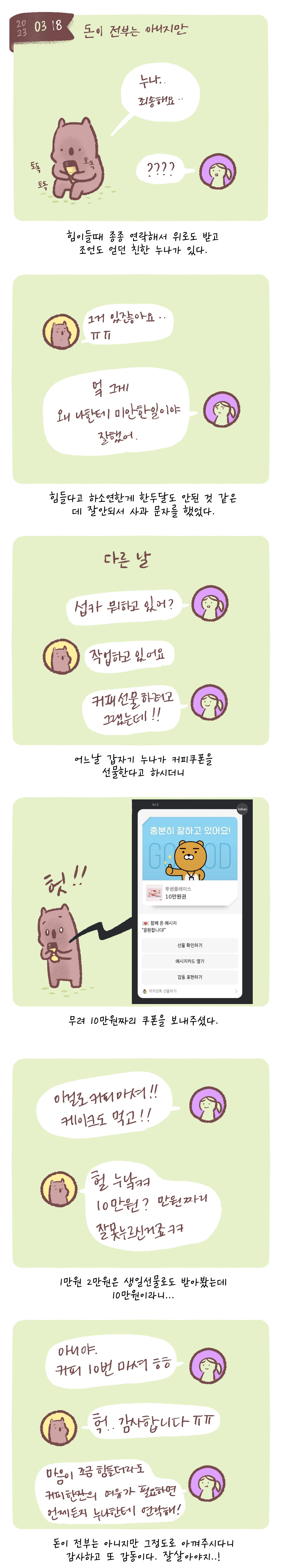 <섭섭하지 않은 쿼카>그림일기 웹툰 작가이자 운동을 좋아하는 일러스트레이터입니다. 따뜻한 그림을 그리고 싶습니다. 작가님의 글에 따뜻함을 더하고 싶으신분들은 제안해주세요.